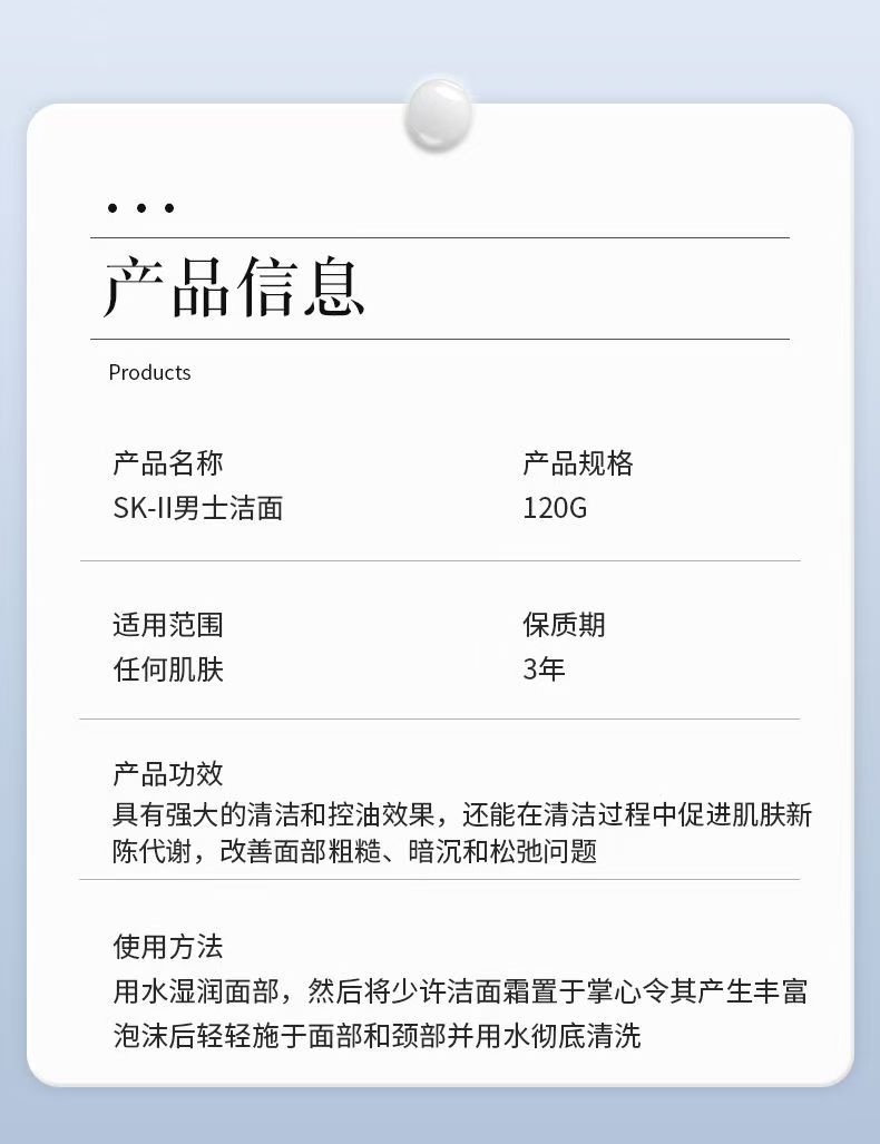 【品牌授权】SKII 男士焕活保湿洁面洗面奶120g深层洁净保湿