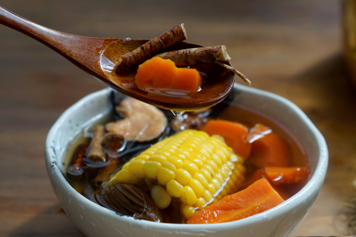 五指毛桃根煲出的汤有一股椰子的香味,非常好喝。