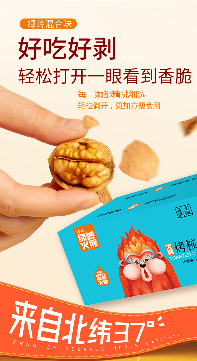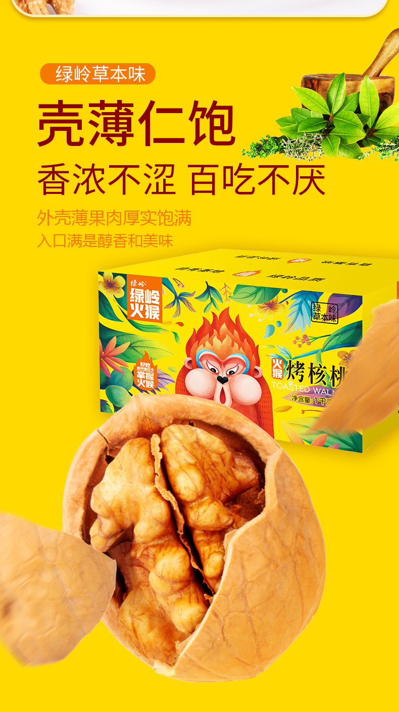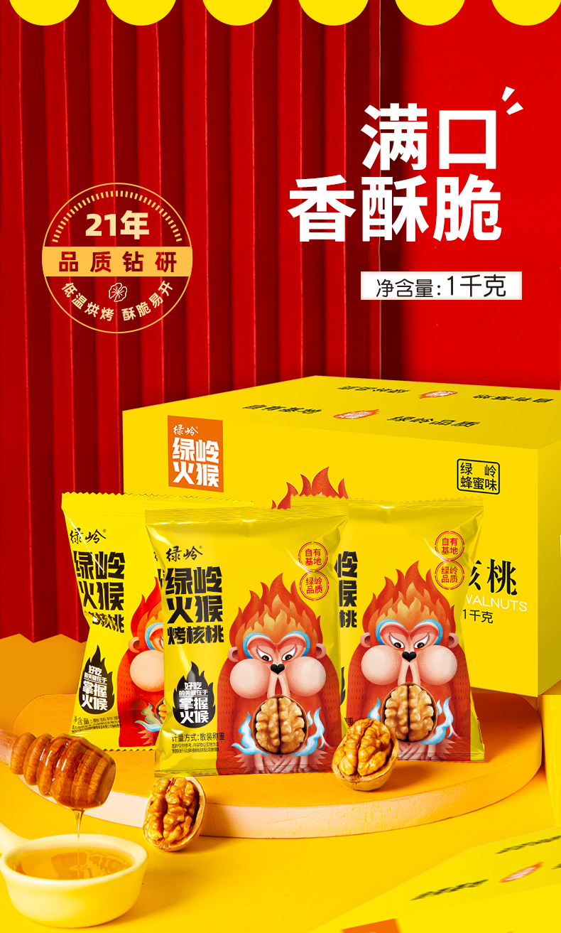 绿岭火猴烤核桃 蜂蜜味、草本味 1kg/箱