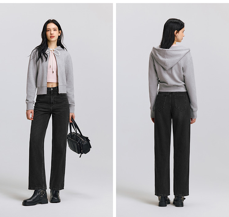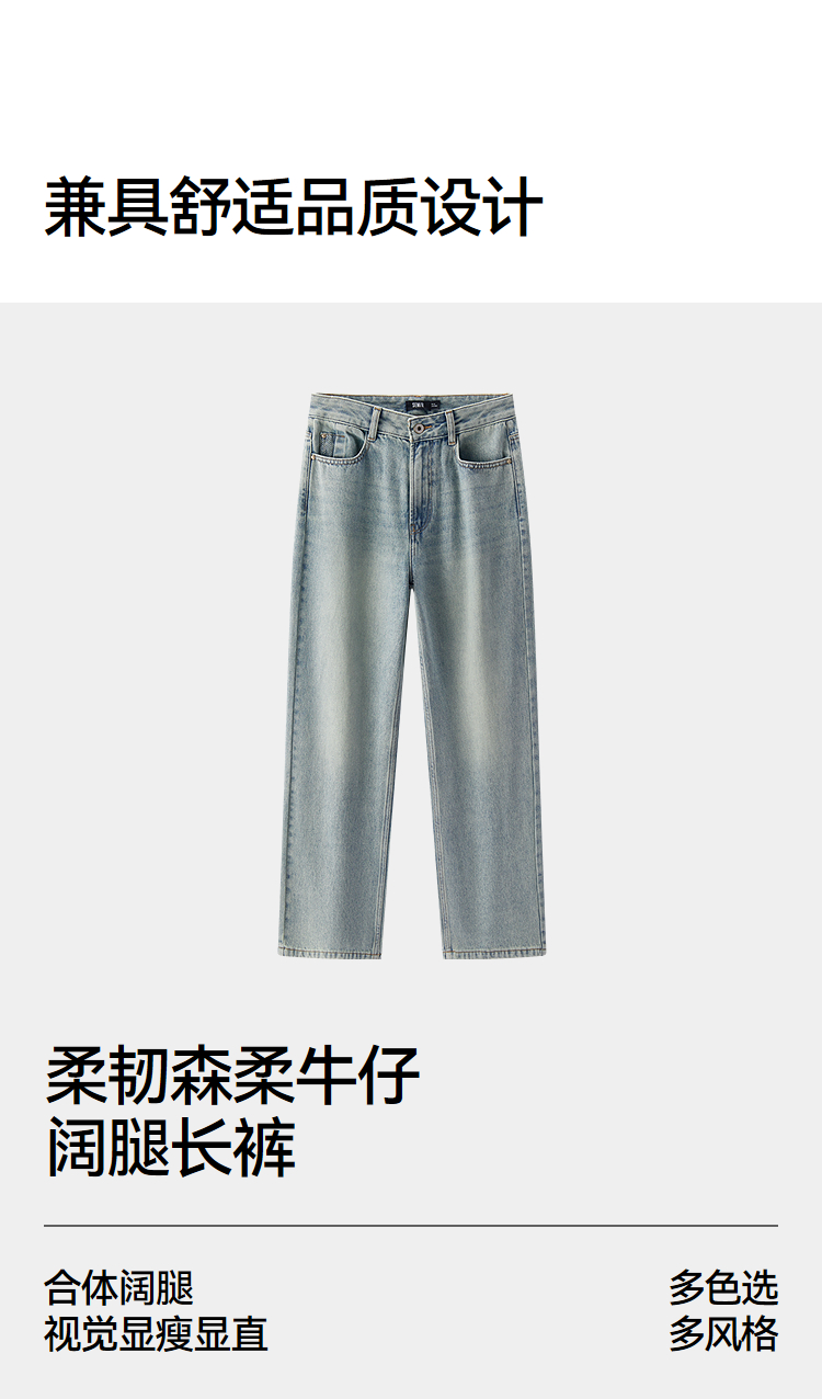 森柔|森马牛仔裤女春季阔腿裤遮肉基础ins潮流简约女生小个子长裤