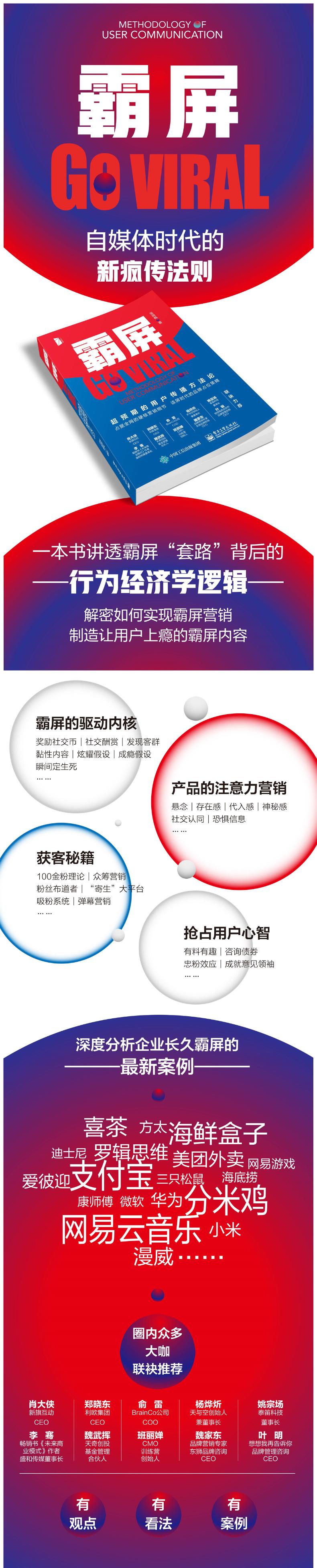 本书共分为九章,分别介绍了企业创作霸屏内容的13条军规、构成产品畅销的8个元素、造就霸屏的6大法则、抢占用户心智的5个技巧、厘清霸屏广告的3大原则、营造热门社群的5大方法、粉丝倍增的9大获客秘籍、打造霸屏产品的5个战略以及霸屏营销的8个创新思维等内容。