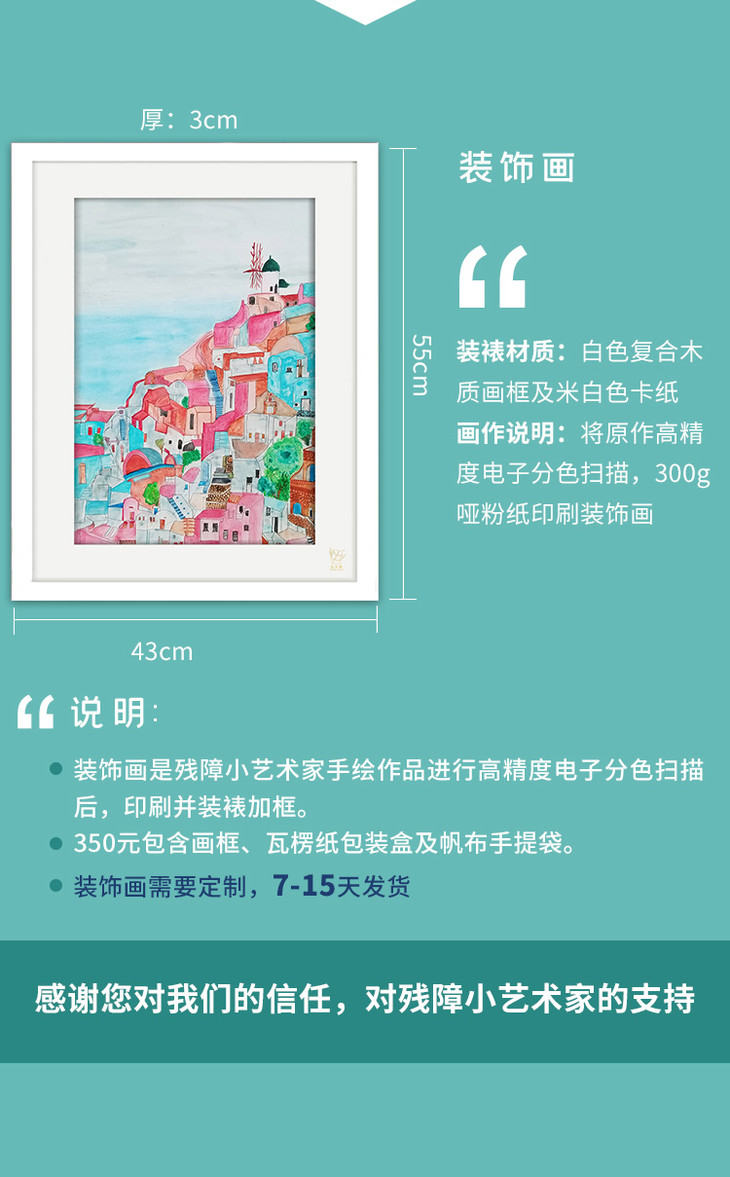 装饰画《静谧的圣托里尼》 金羽翼残障小艺术家手绘作品 复制画/原画