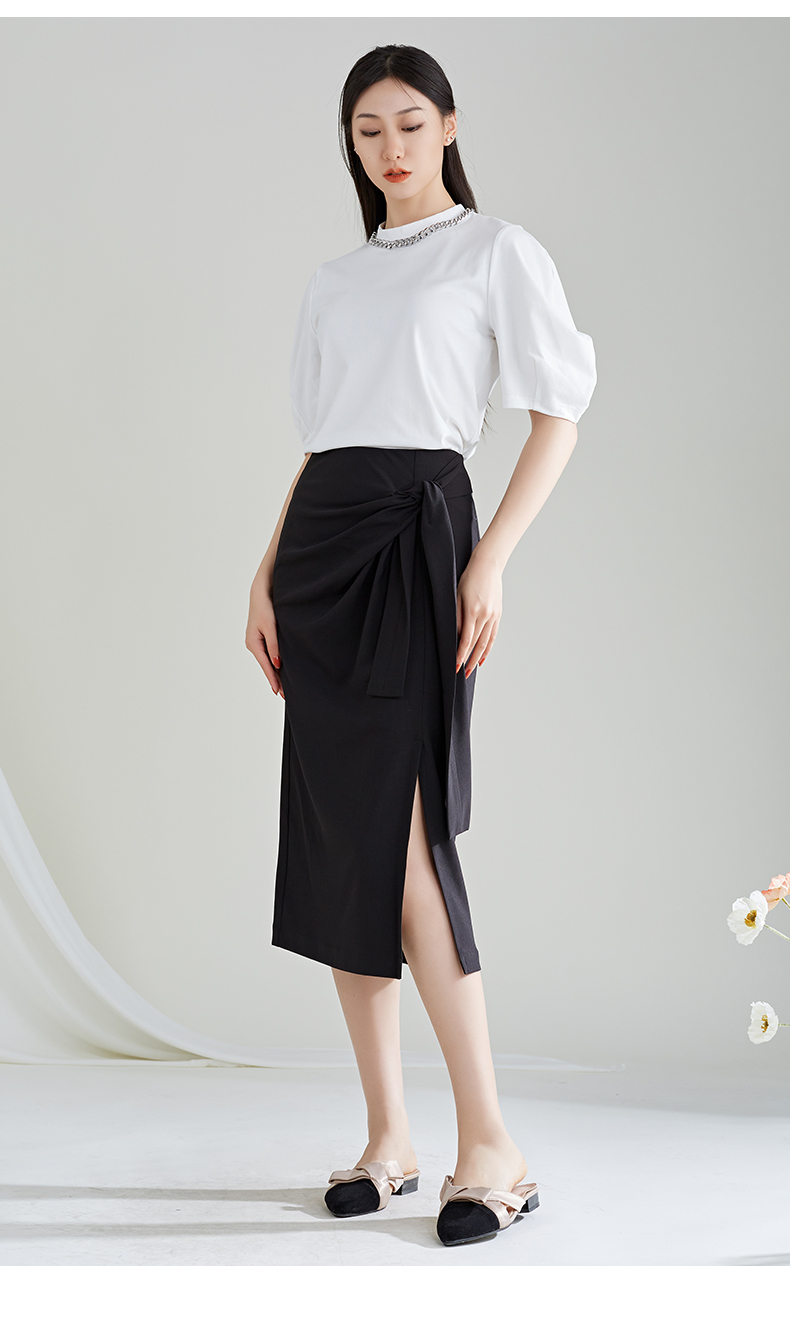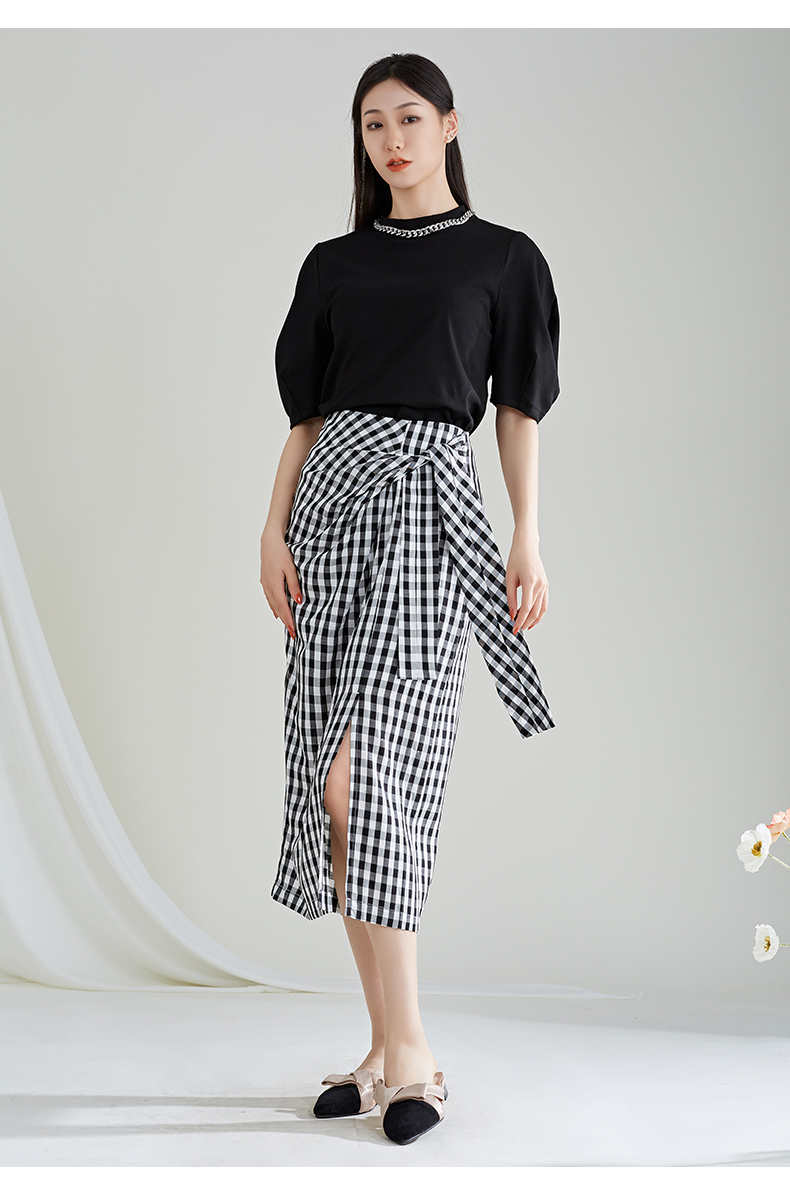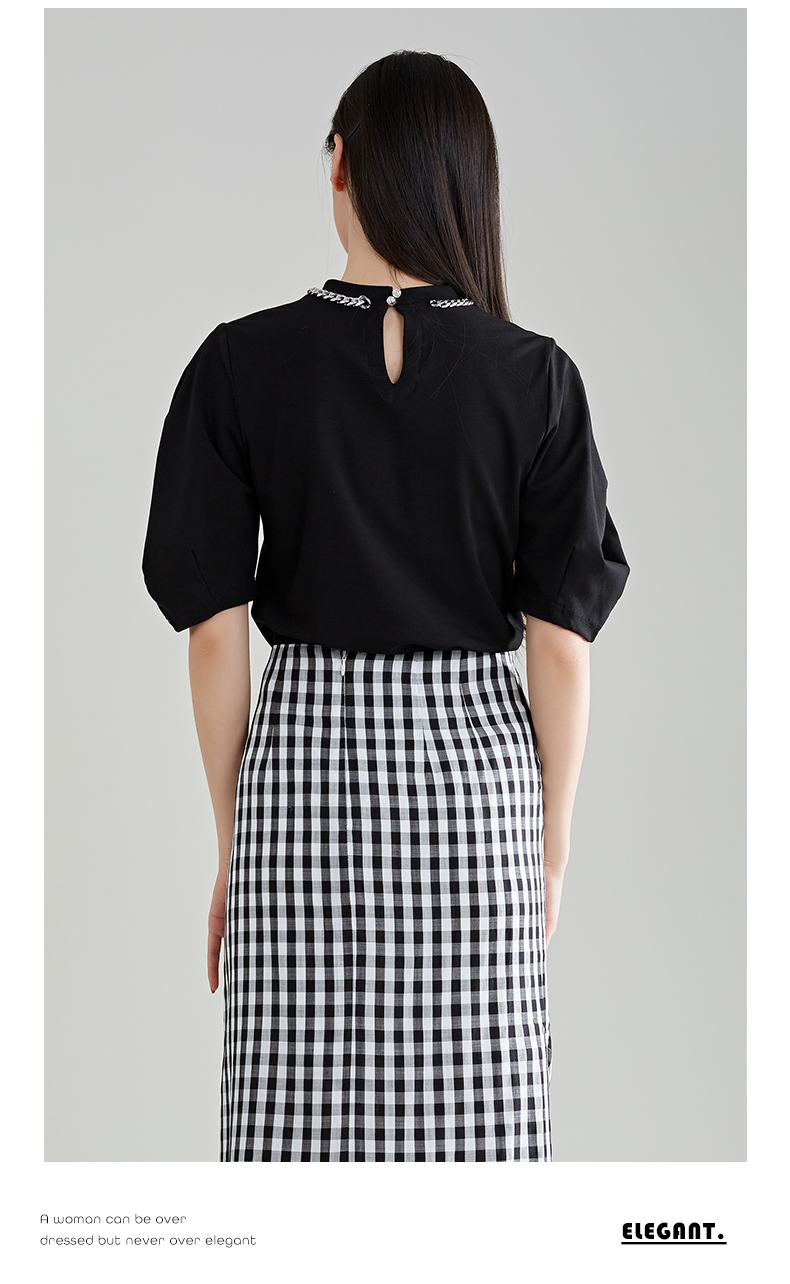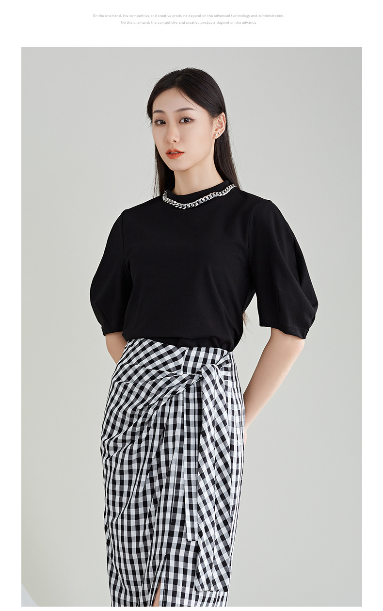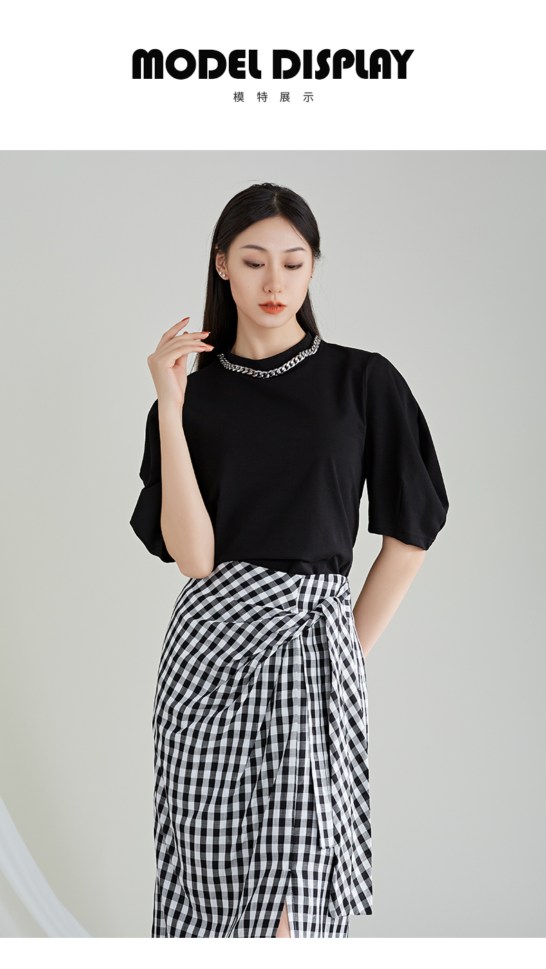 【特价不退换】阿菁娜春夏别致设计泡泡袖链条棉弹短款T恤F27C202020