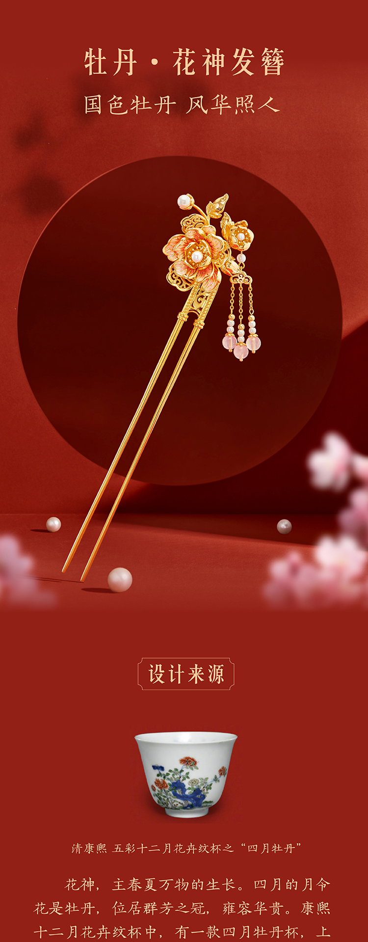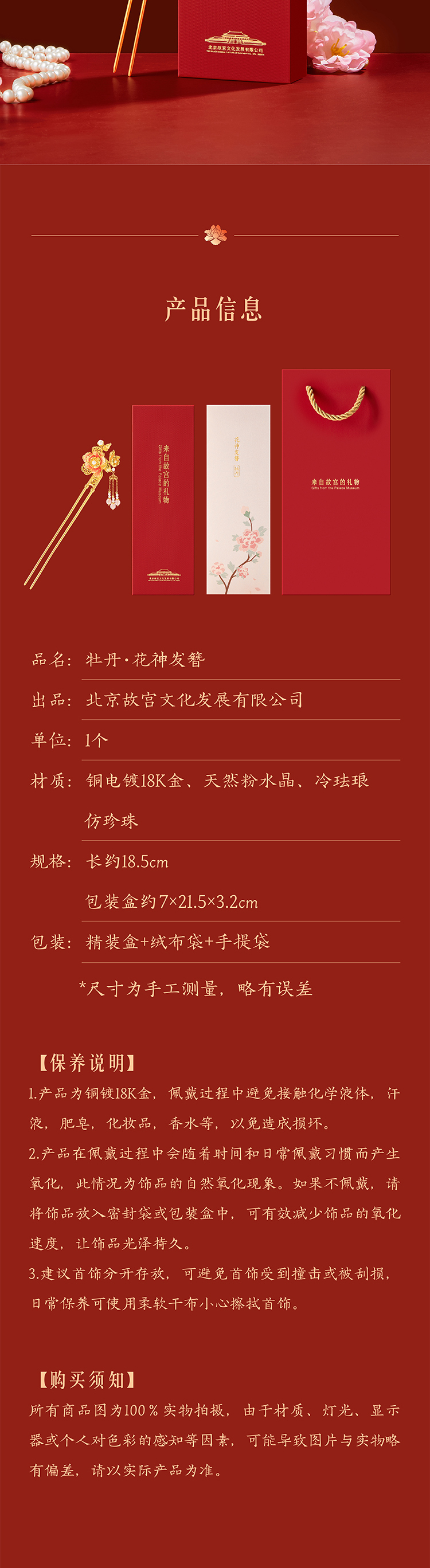 【故宫饰品】牡丹花神发簪博物馆文创中国风汉服簪子发钗送女生