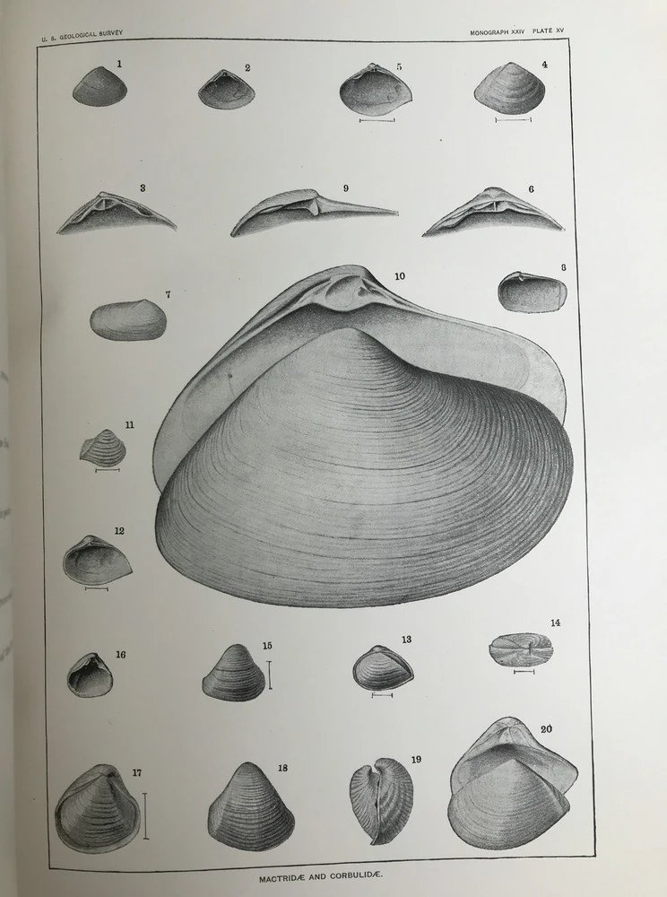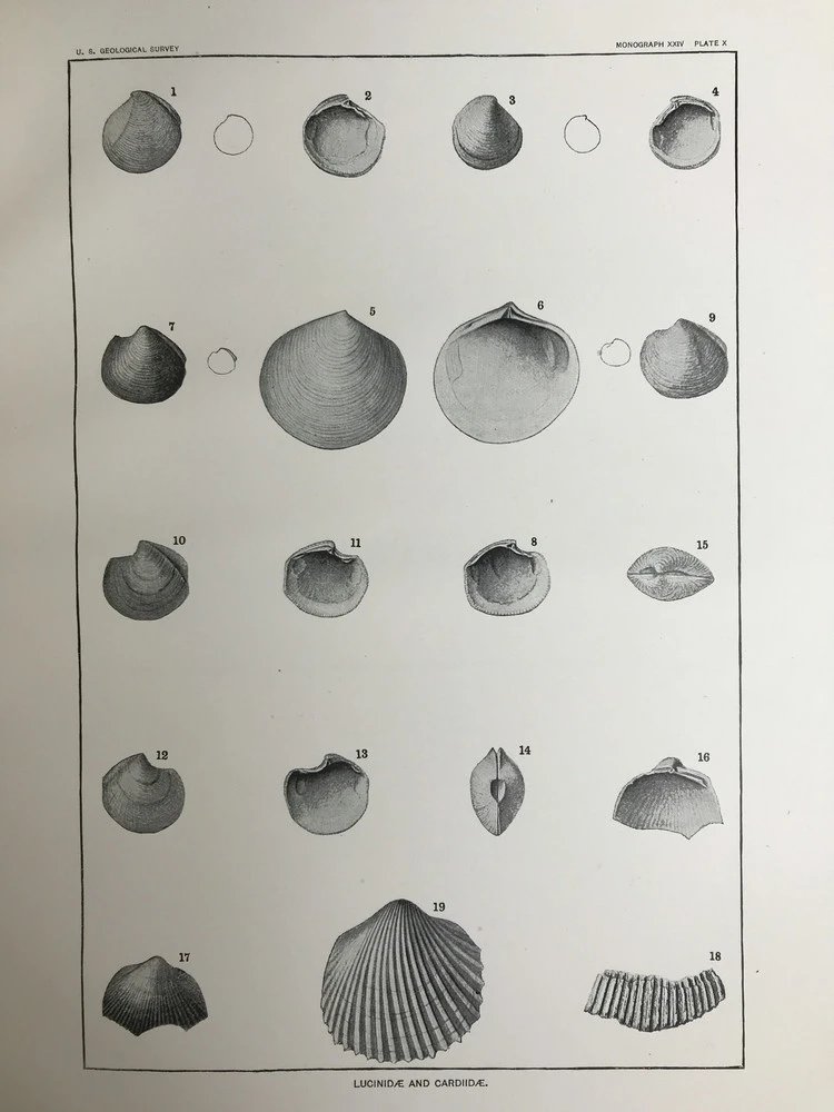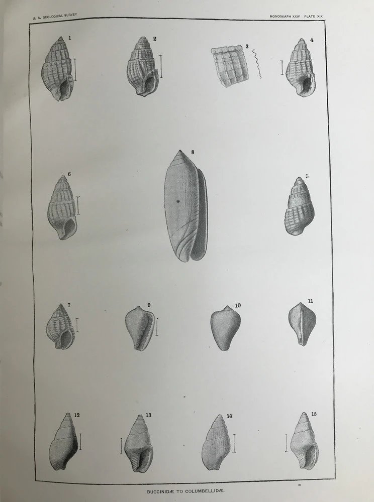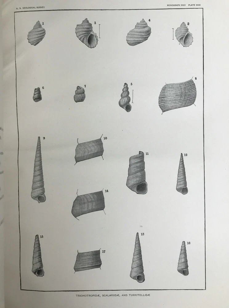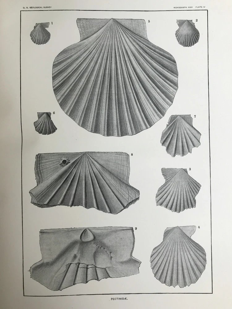 1894年 新泽西中新世地层软体与甲壳动物化石图鉴 24页版画插图 漆布精装大16开