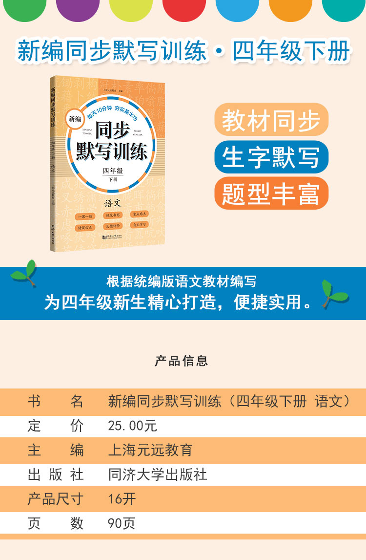 新编同步默写训练 部编版 4年级下册/四年级第二学期 语文 同济大学出版社 新编上海语文教材同步听默写训练 语文默写助手