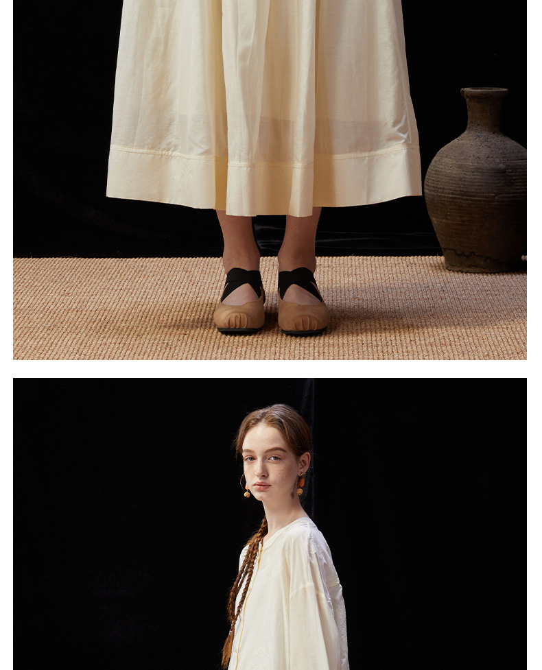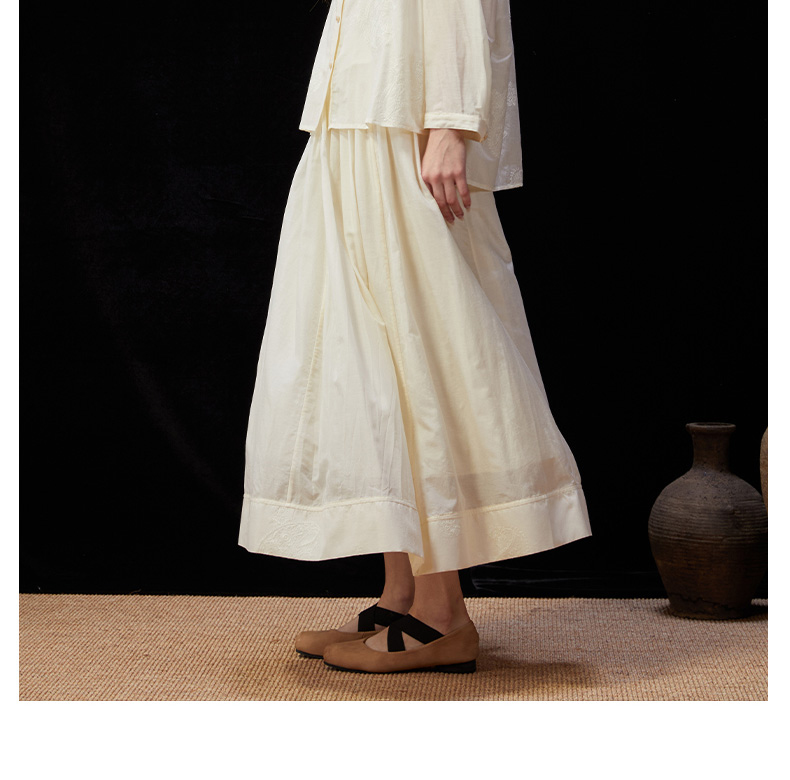 设计师品牌FAMECOCO桑蚕丝棉A字半裙长款大摆伞裙25夏新FAD3HA028
