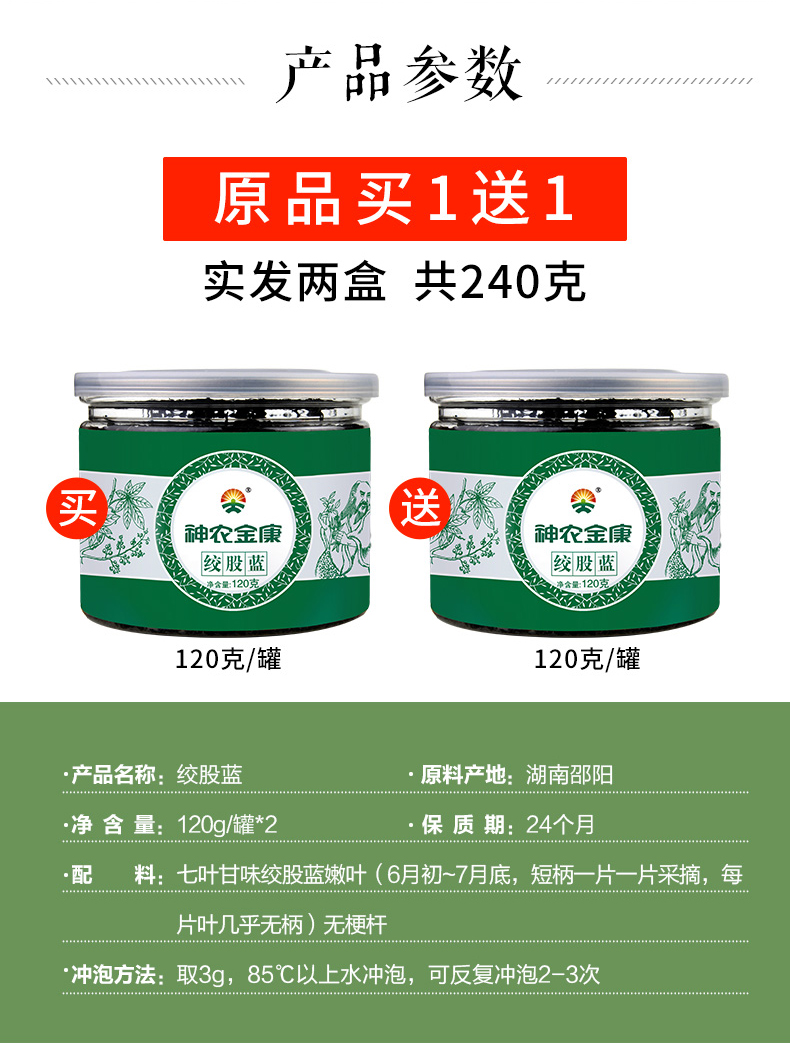 【2025年春茶季】神农金康 深山七叶甘味绞股蓝120g/罐 原生态真滋补 喝护家人健康