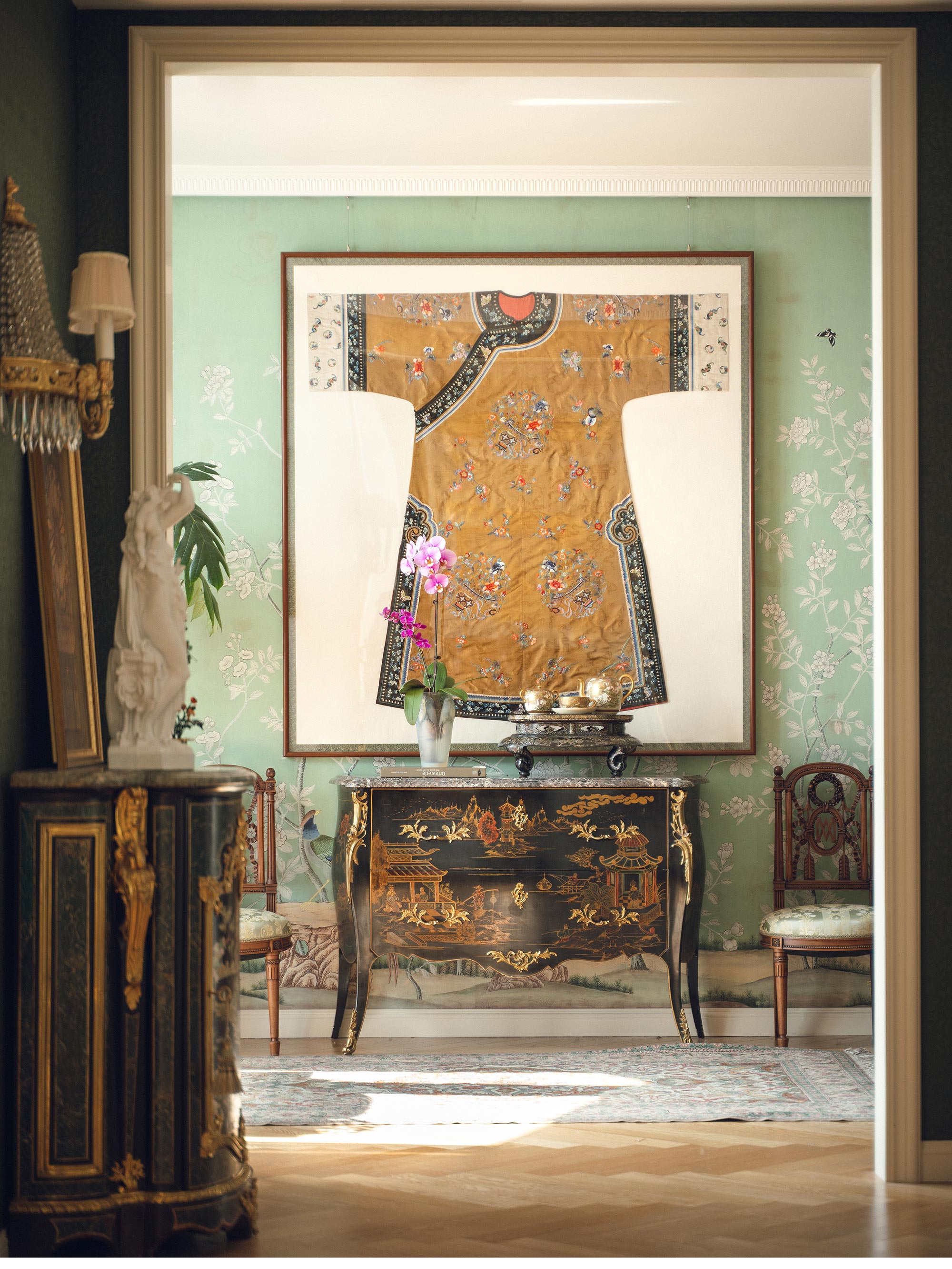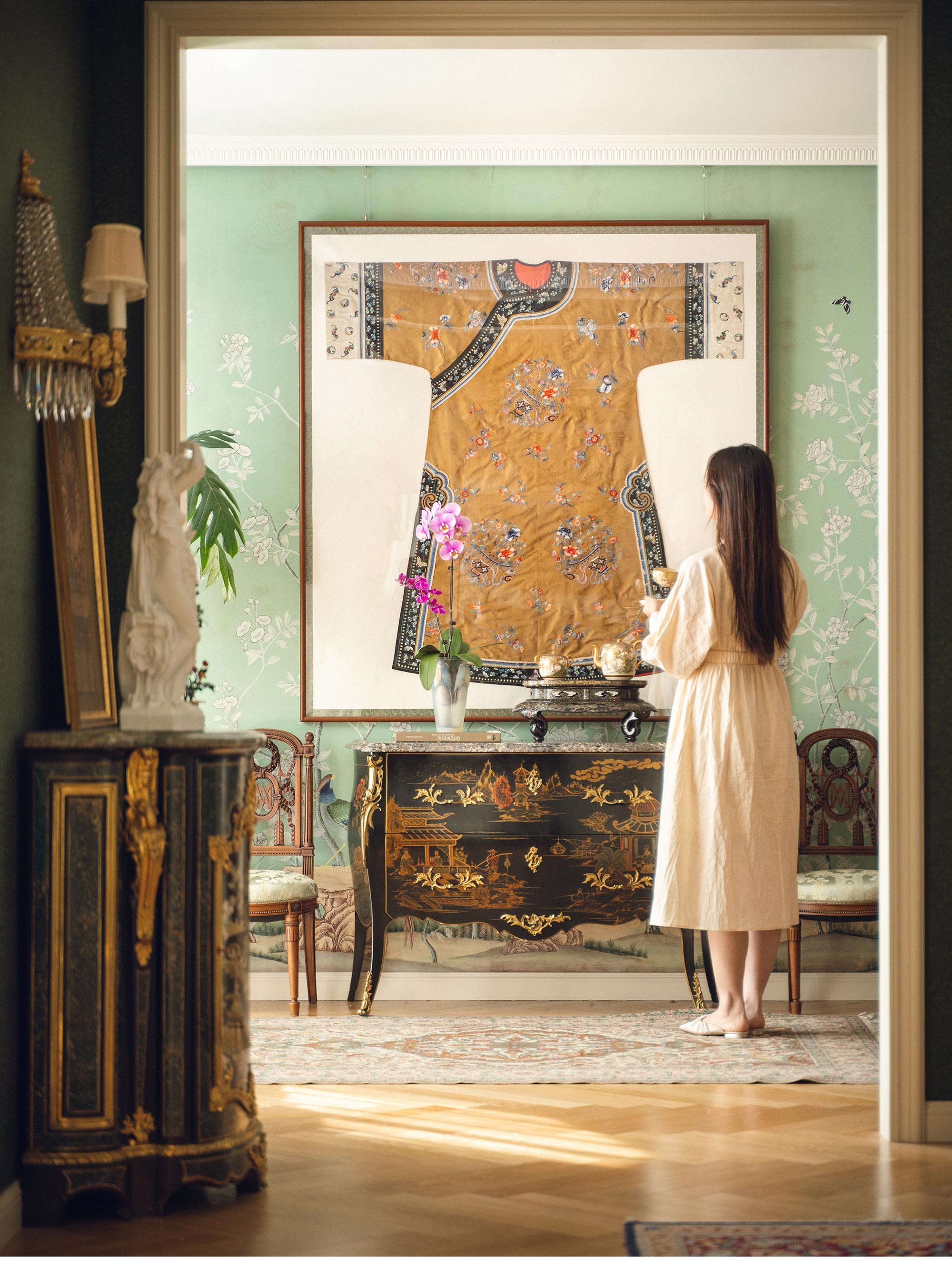 尺寸:长136.5厘米,宽134.5厘米(双袖展开)