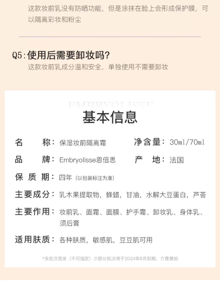 法国 Embryolisse大宝 隔离妆前乳 30ml/75ml