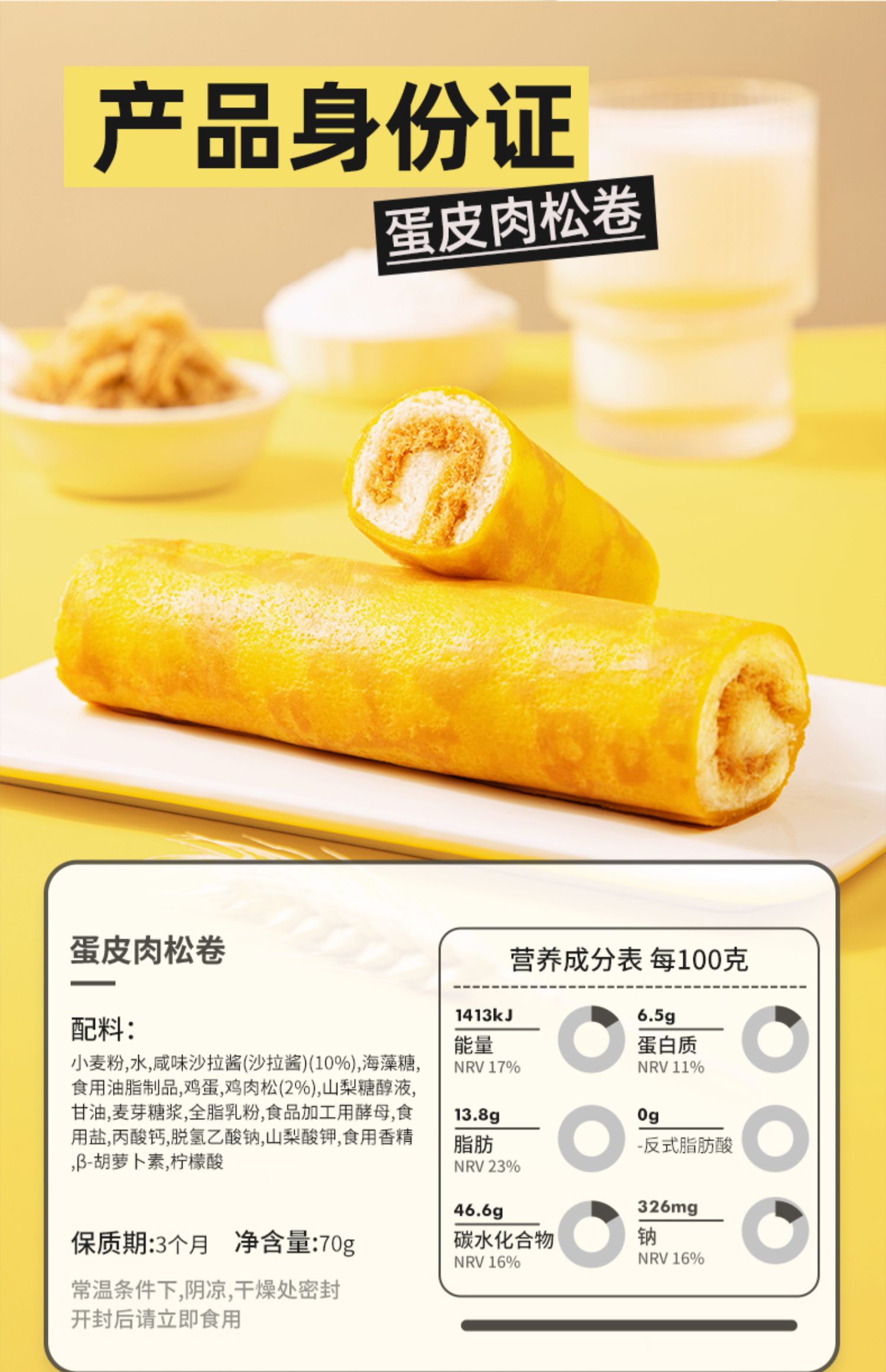 暴肌独角兽蛋皮肉松卷70g*10根 蛋糕卷夹心面包零食小吃早餐营养休闲食品