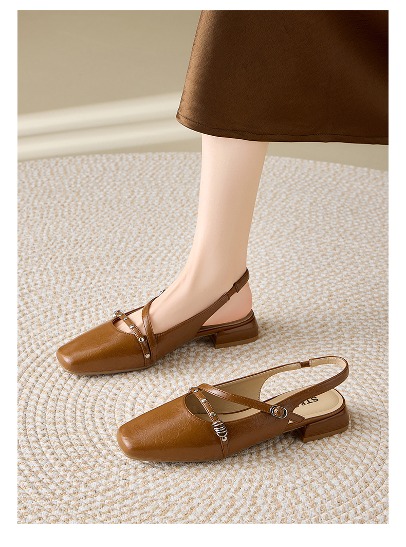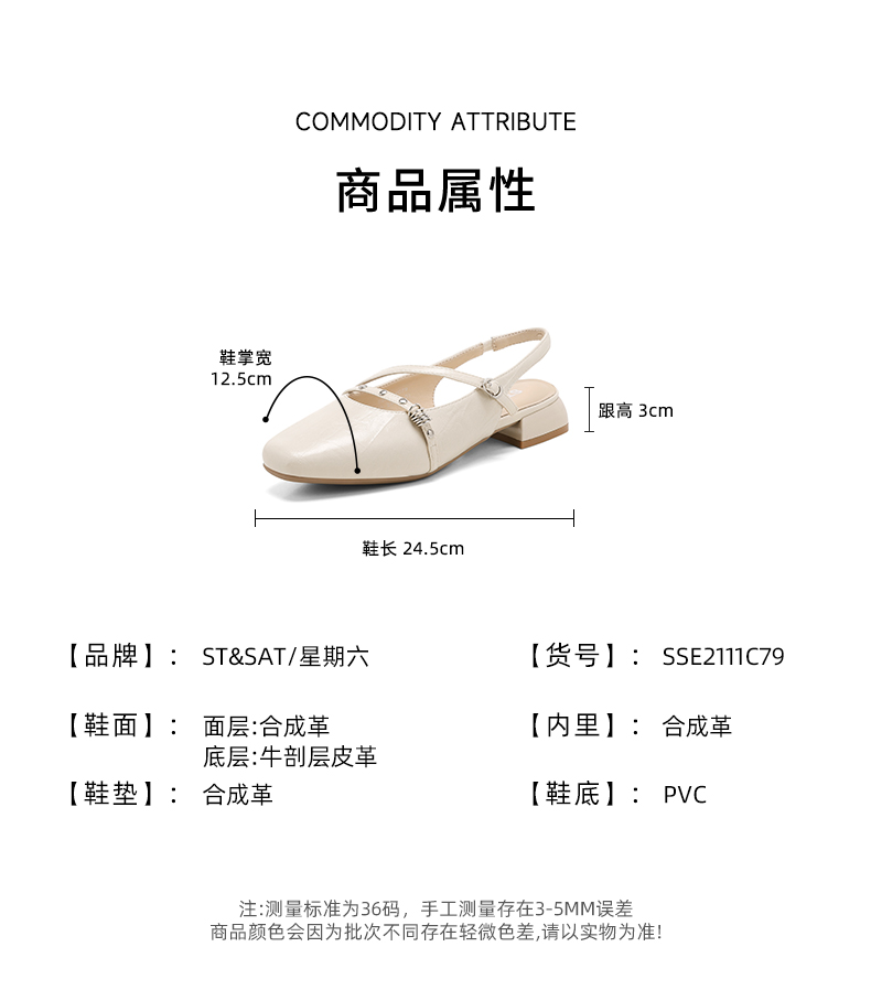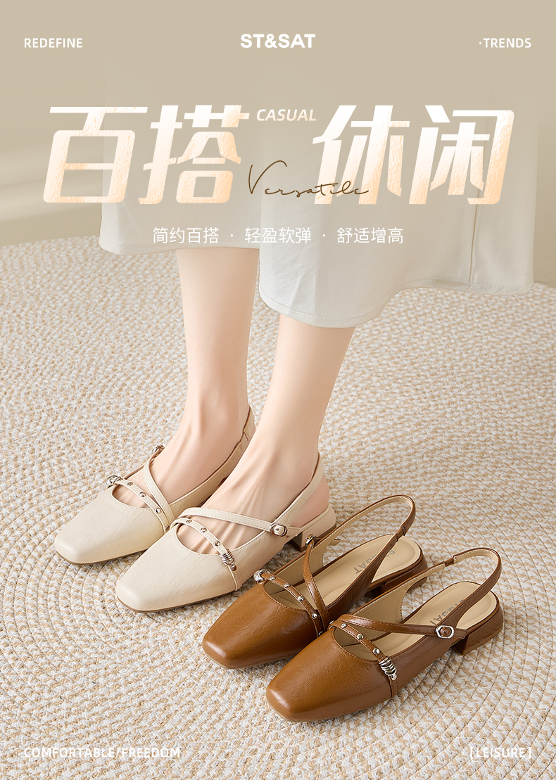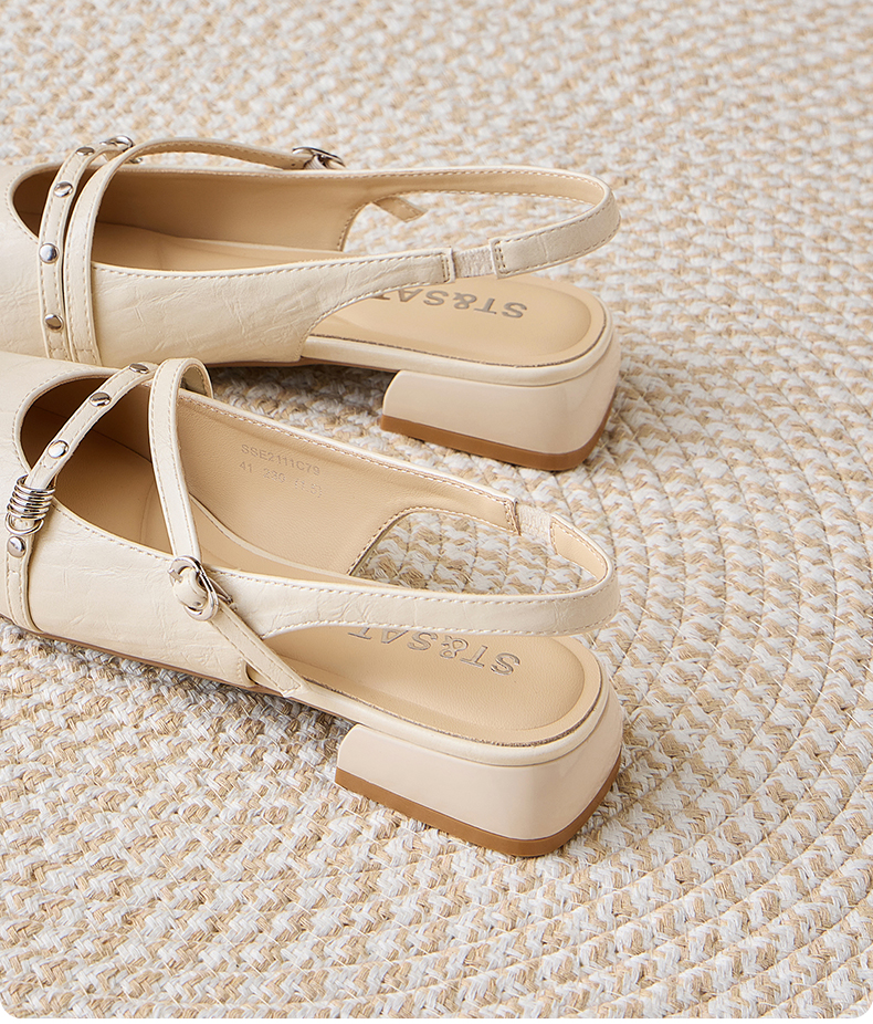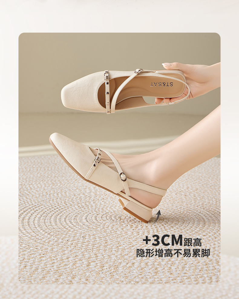 星期六26夏新款法式复古细带低跟后空凉鞋SSE2111C79