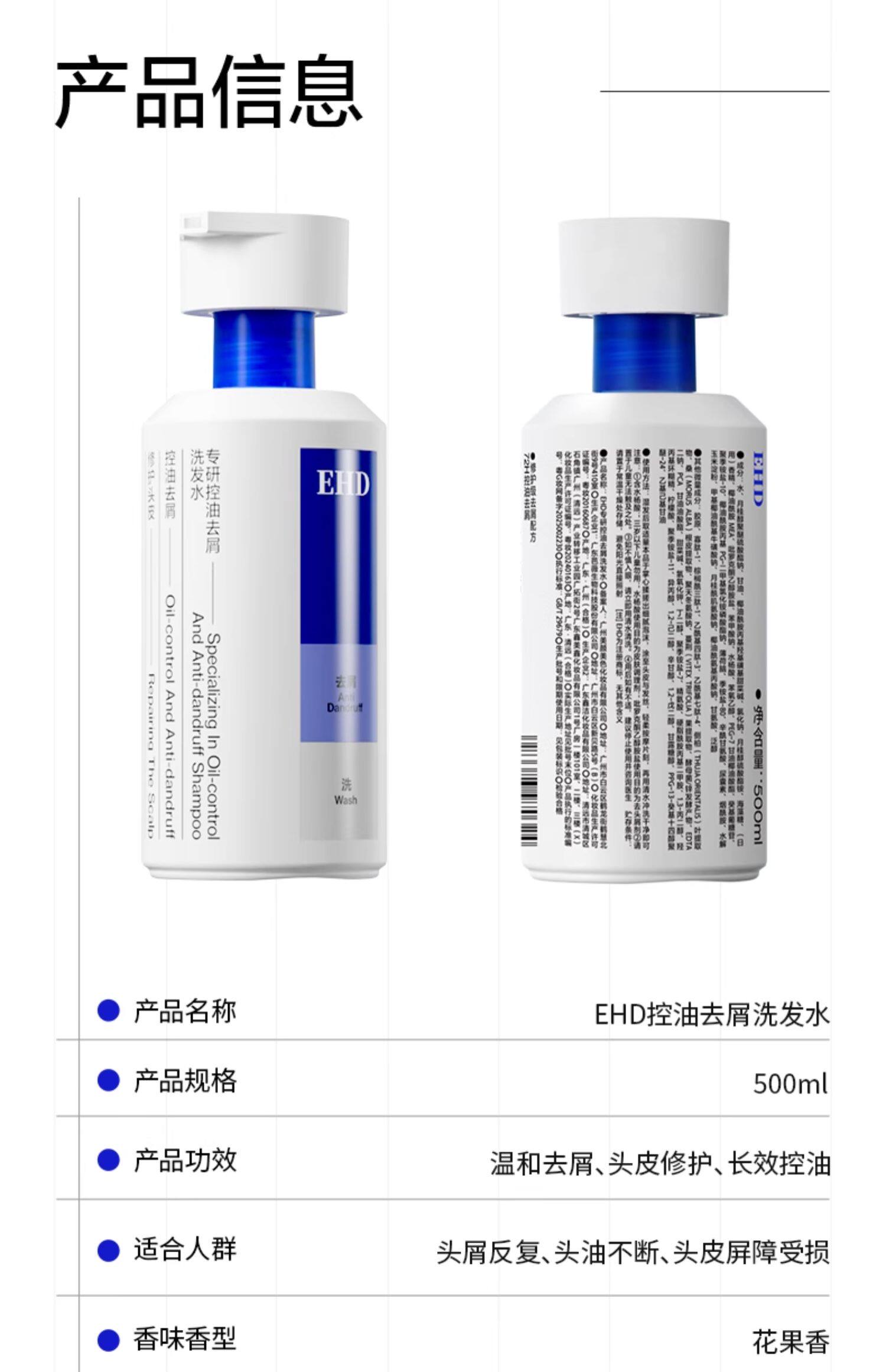 【89元买一到手七件】EHD 洗发水控油去屑蓬松专用洗发露洗头膏 400ml