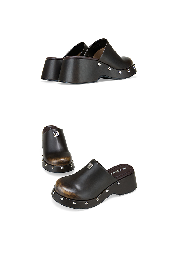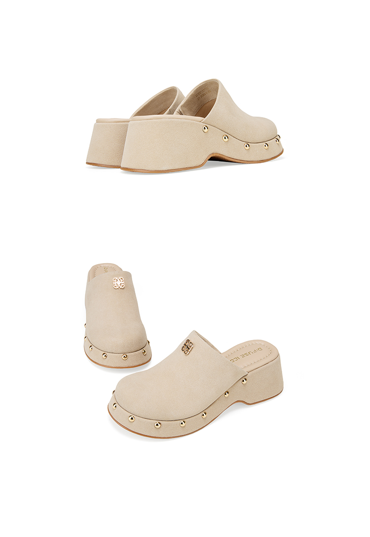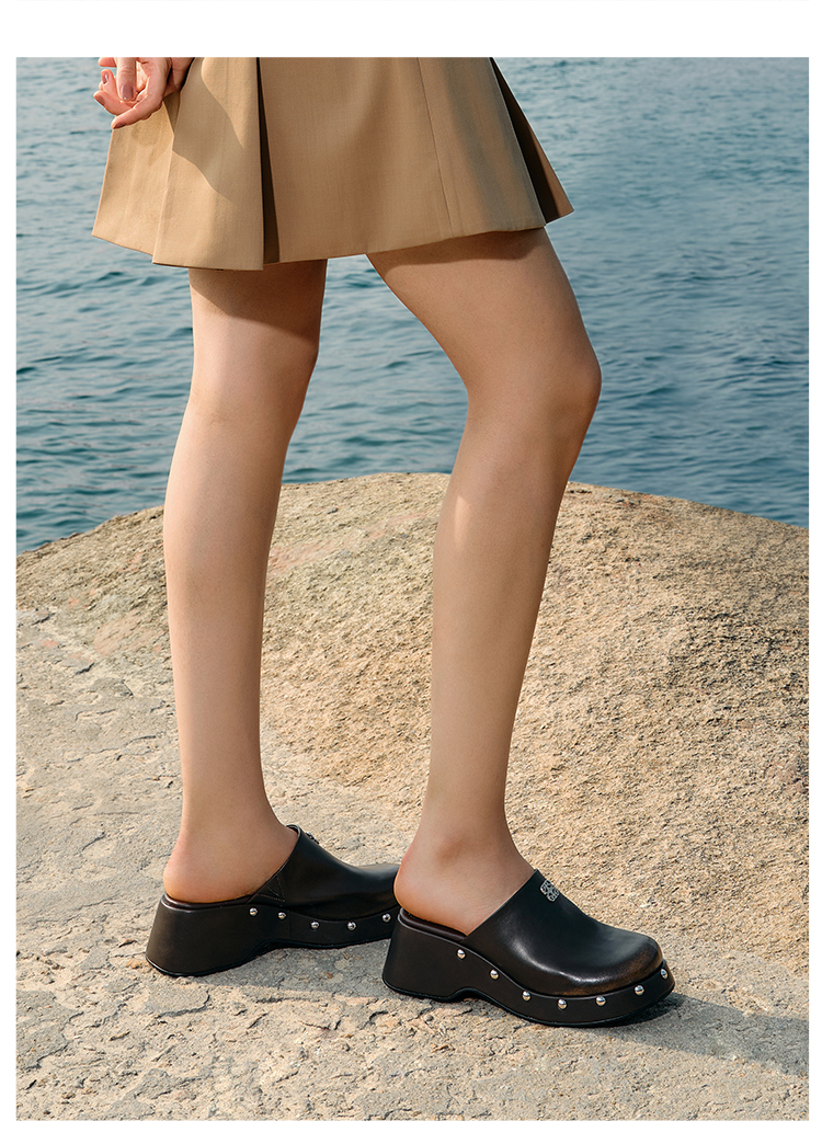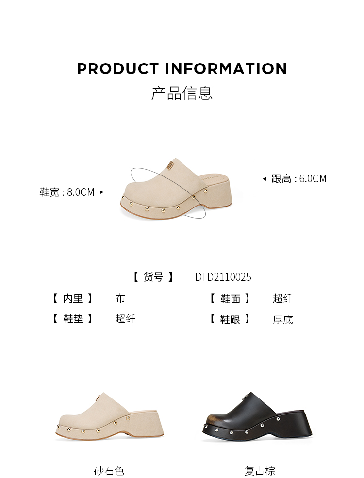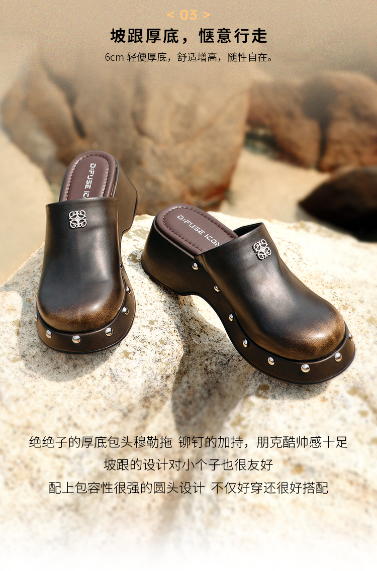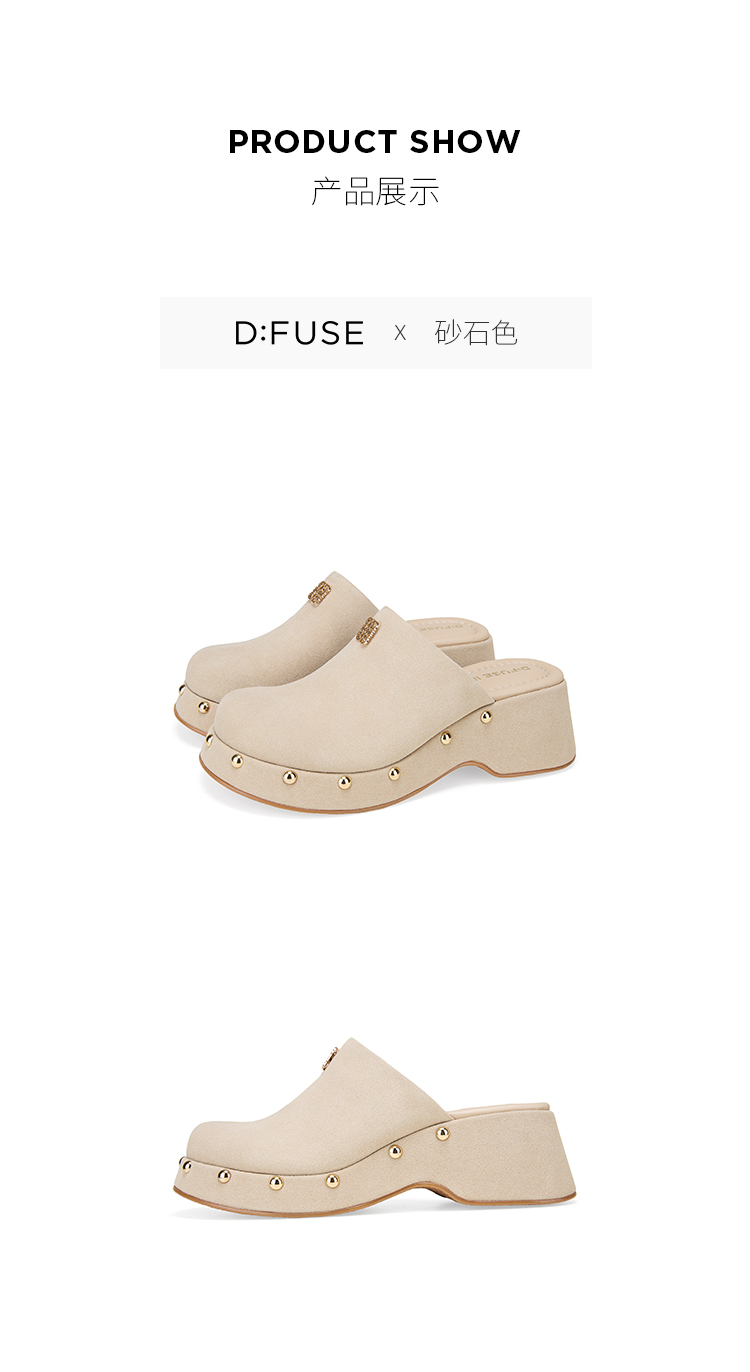 Dfuse迪芙斯2025秋季新款圆头铆钉坡跟凉拖鞋时尚厚底包头穆勒鞋DFD3110025