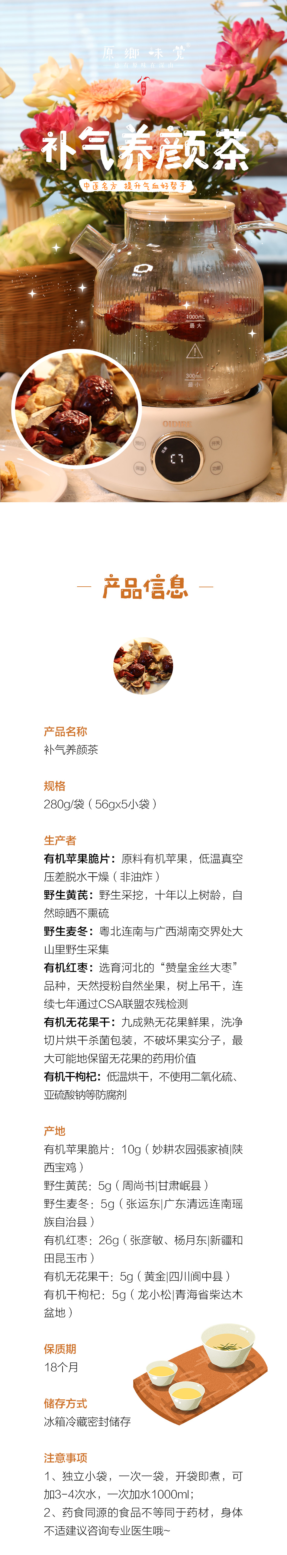 补气养颜茶|黄芪苹果茶(成都仓库-顺丰快递)| 56g*5小袋【原乡自产】