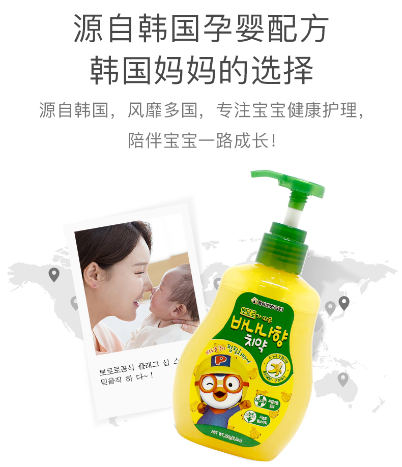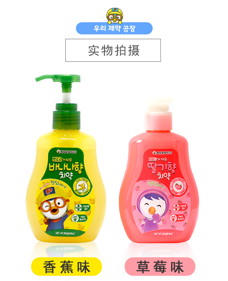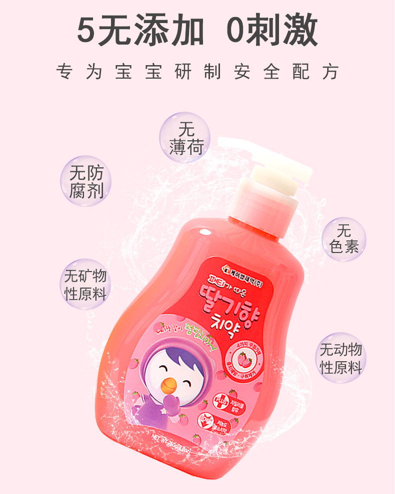 【中欧班列精选】韩国进口XDR Pororo按压牙膏 草莓味250g