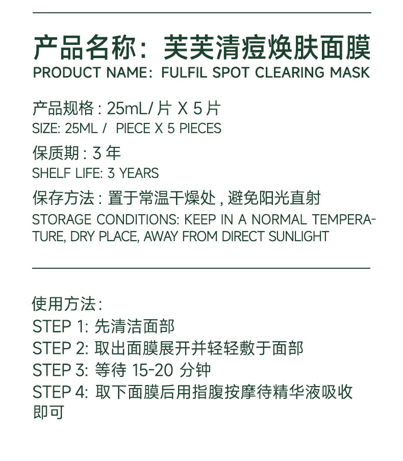 【官方授权】芙芙清痘焕肤面膜5片/盒 绿芙芙面膜