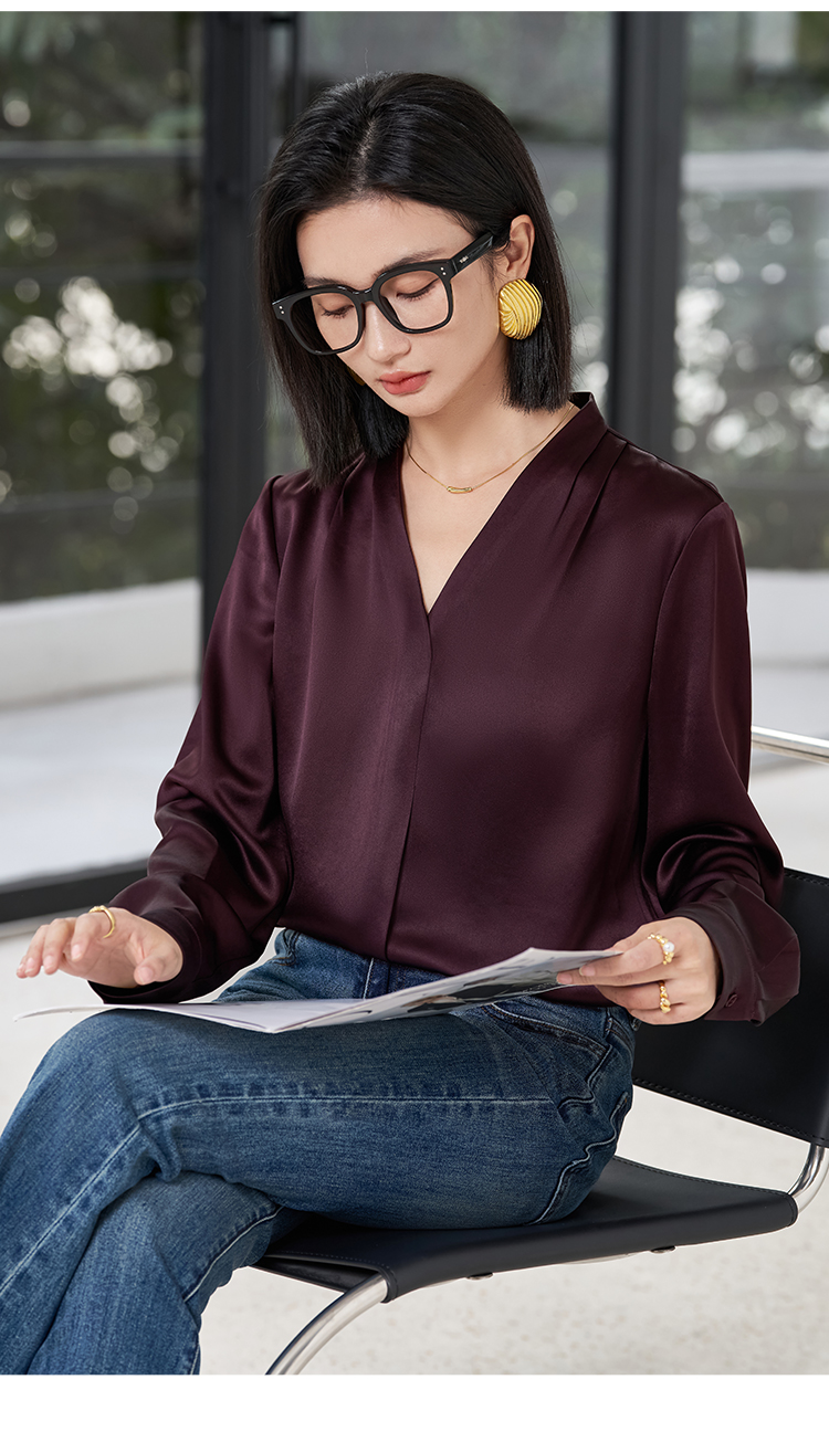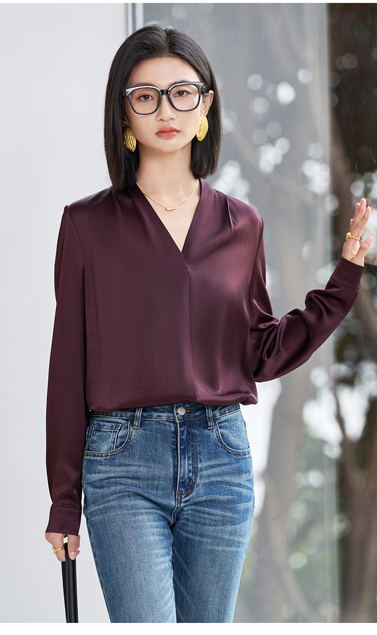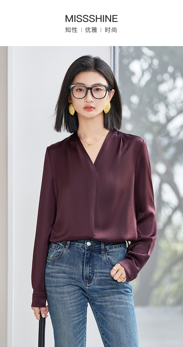 剩M/XXL 轻奢醋酸衬衫 米思阳2026春季新款优雅百搭宽松显白衬衣女5593