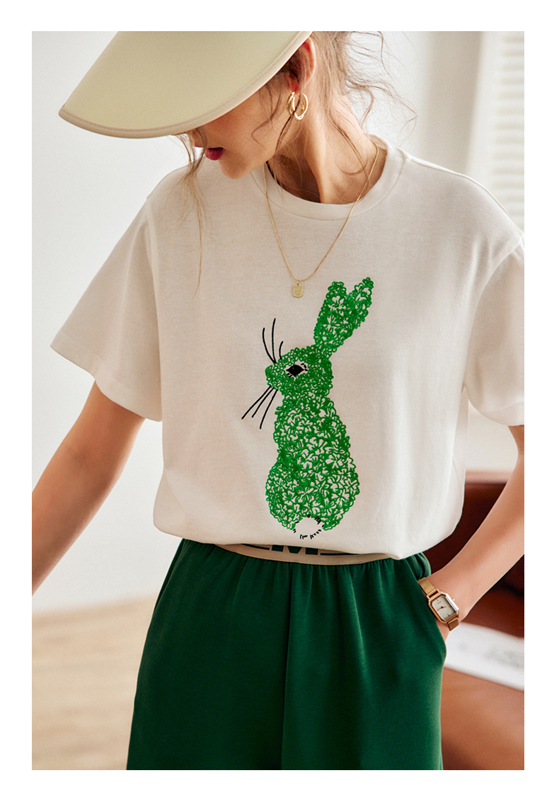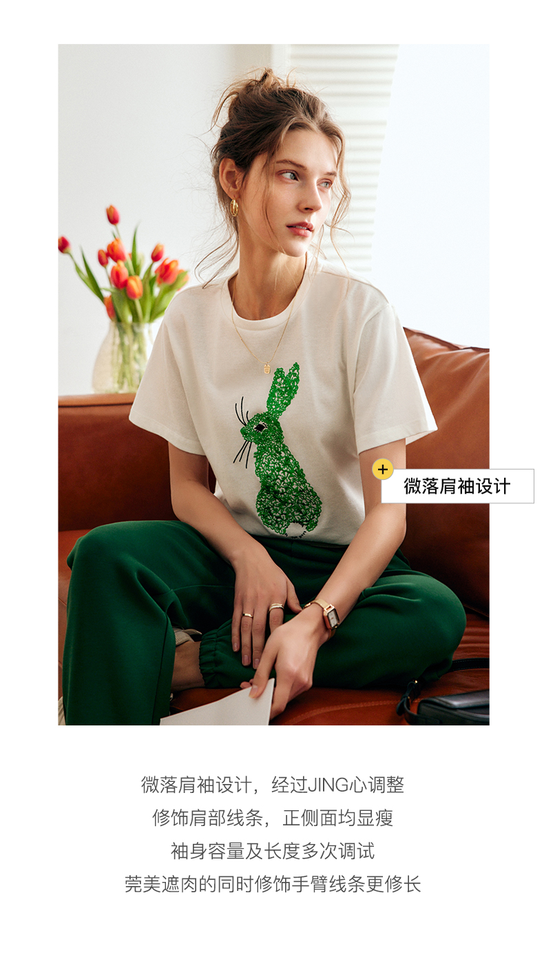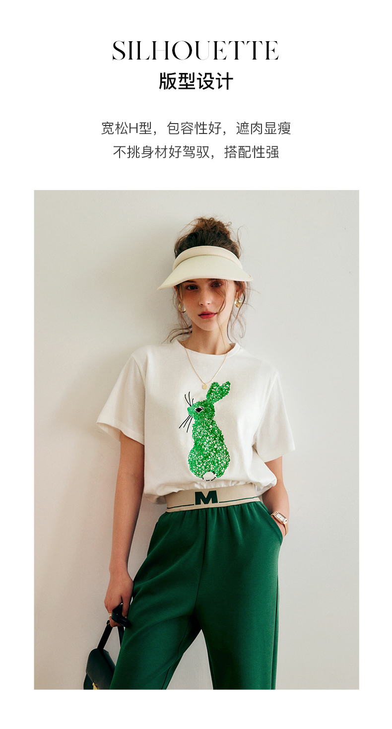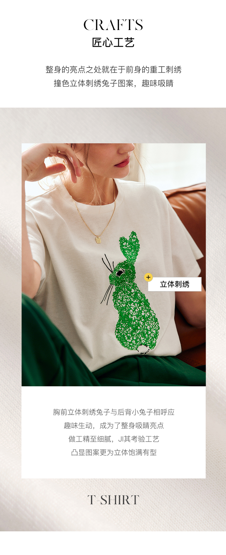 OLrain欧芮儿灰色短袖T恤女春季2025新款高级感通勤趣味刺绣上衣