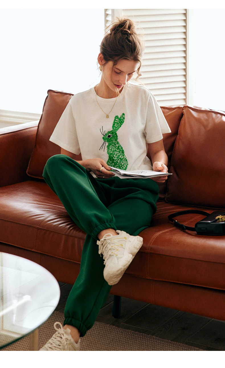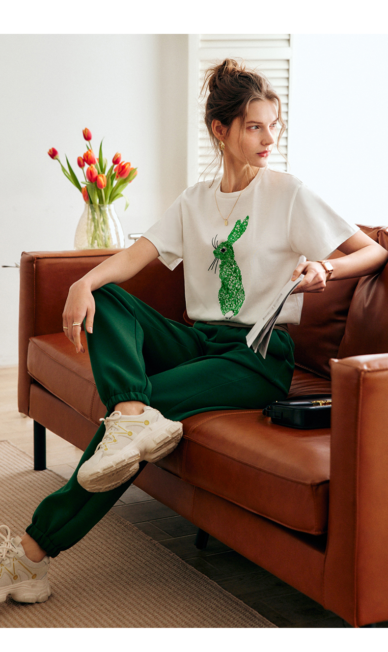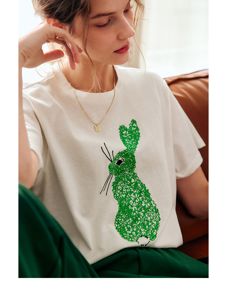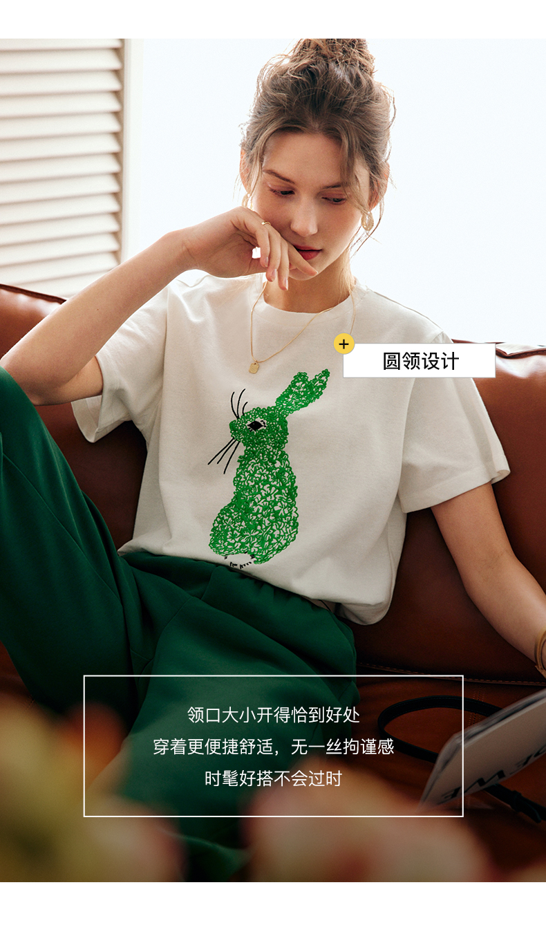 OLrain欧芮儿灰色短袖T恤女春季2025新款高级感通勤趣味刺绣上衣