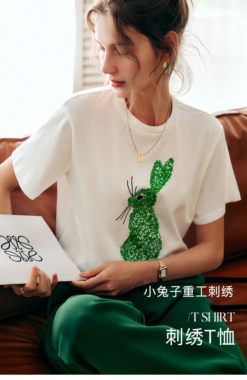OLrain欧芮儿2025年新款夏季领口镂空法式丝巾搭配刺绣短袖T恤女