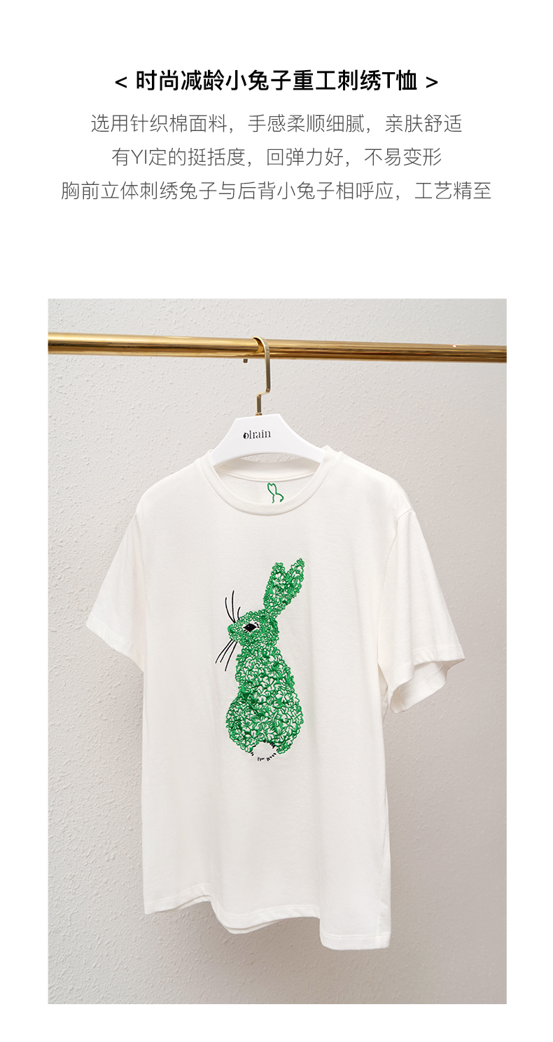 OLrain法式高级穿搭短袖T恤女夏季2022新款气质重工刺绣针织上衣