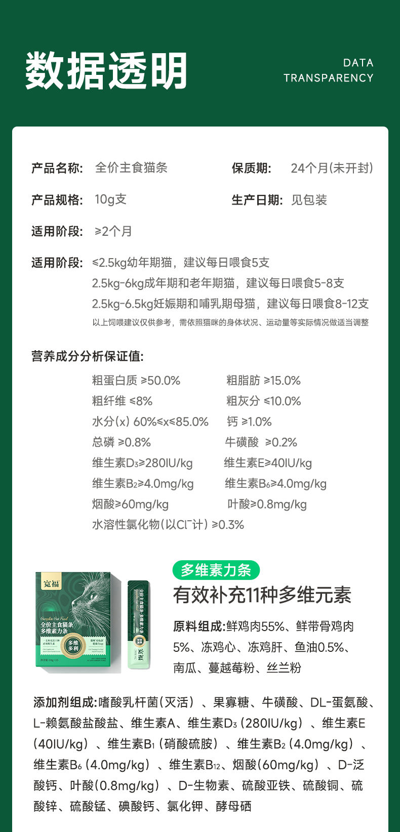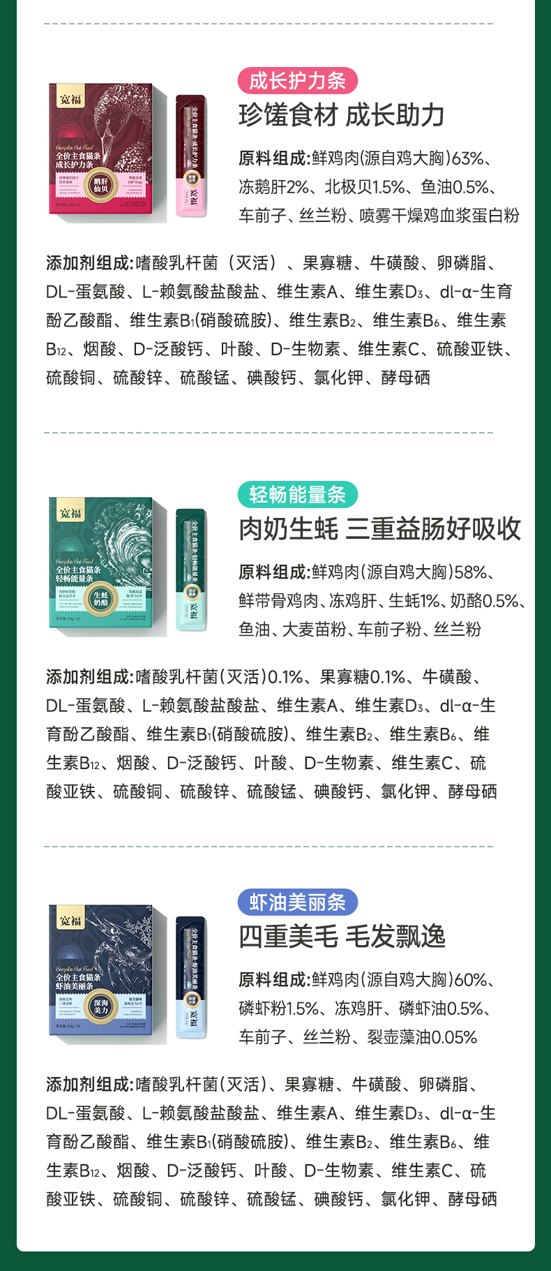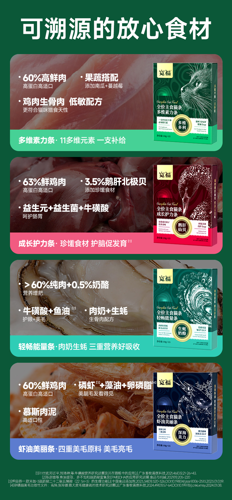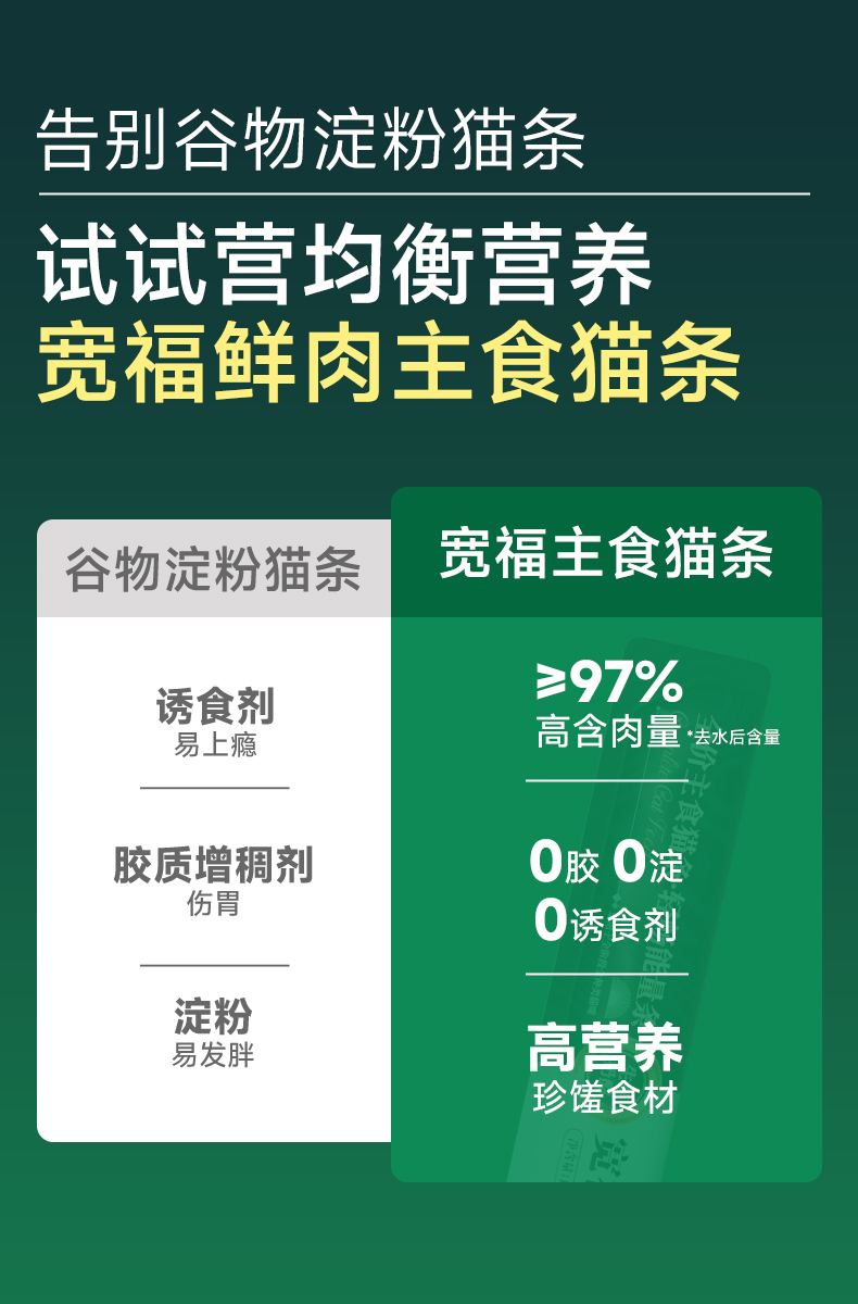 【功能性主食猫条】宽福 高鲜肉高肉含量 四大系列精准呵护 质地细腻食材放心 无诱食剂无淀粉
