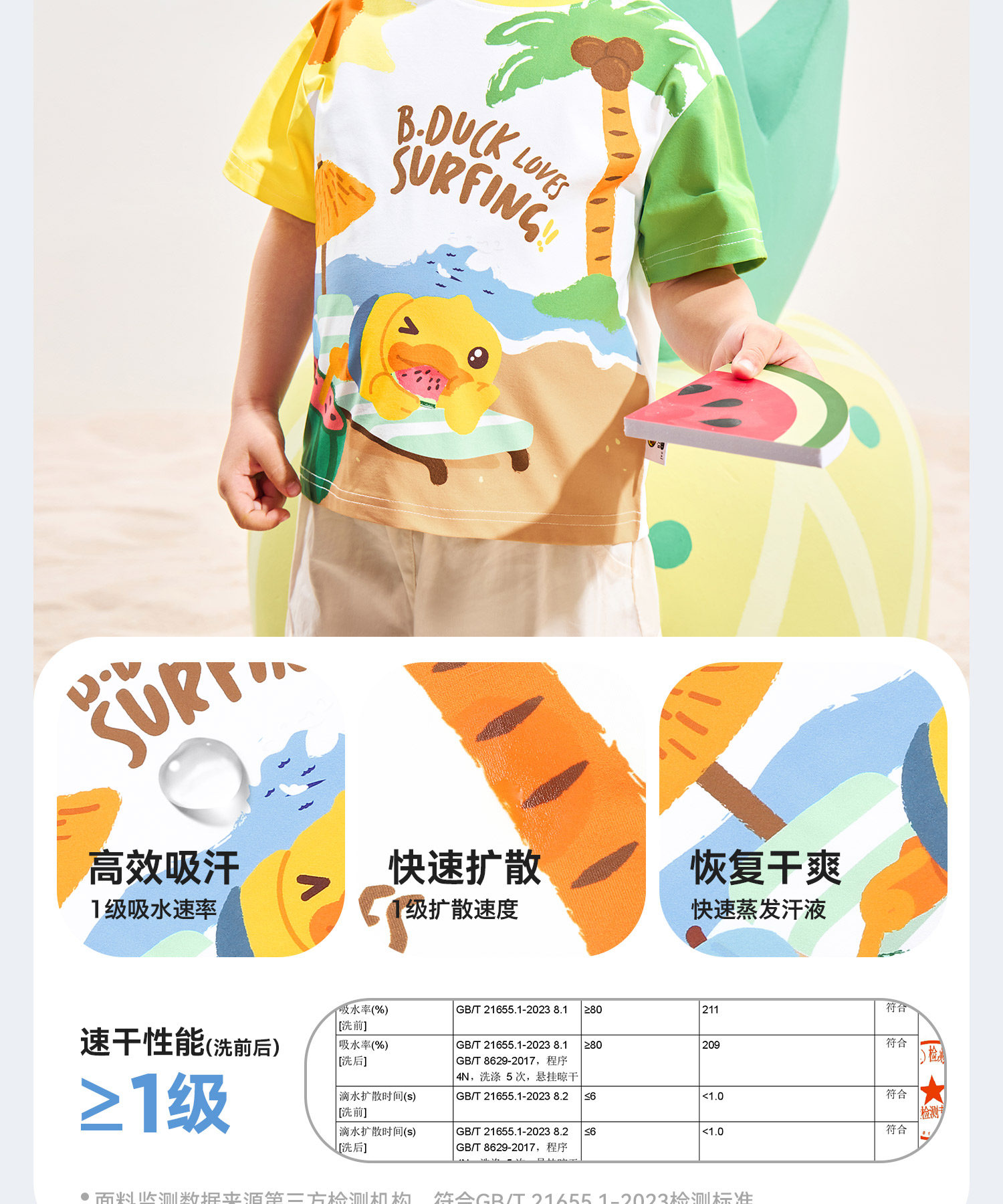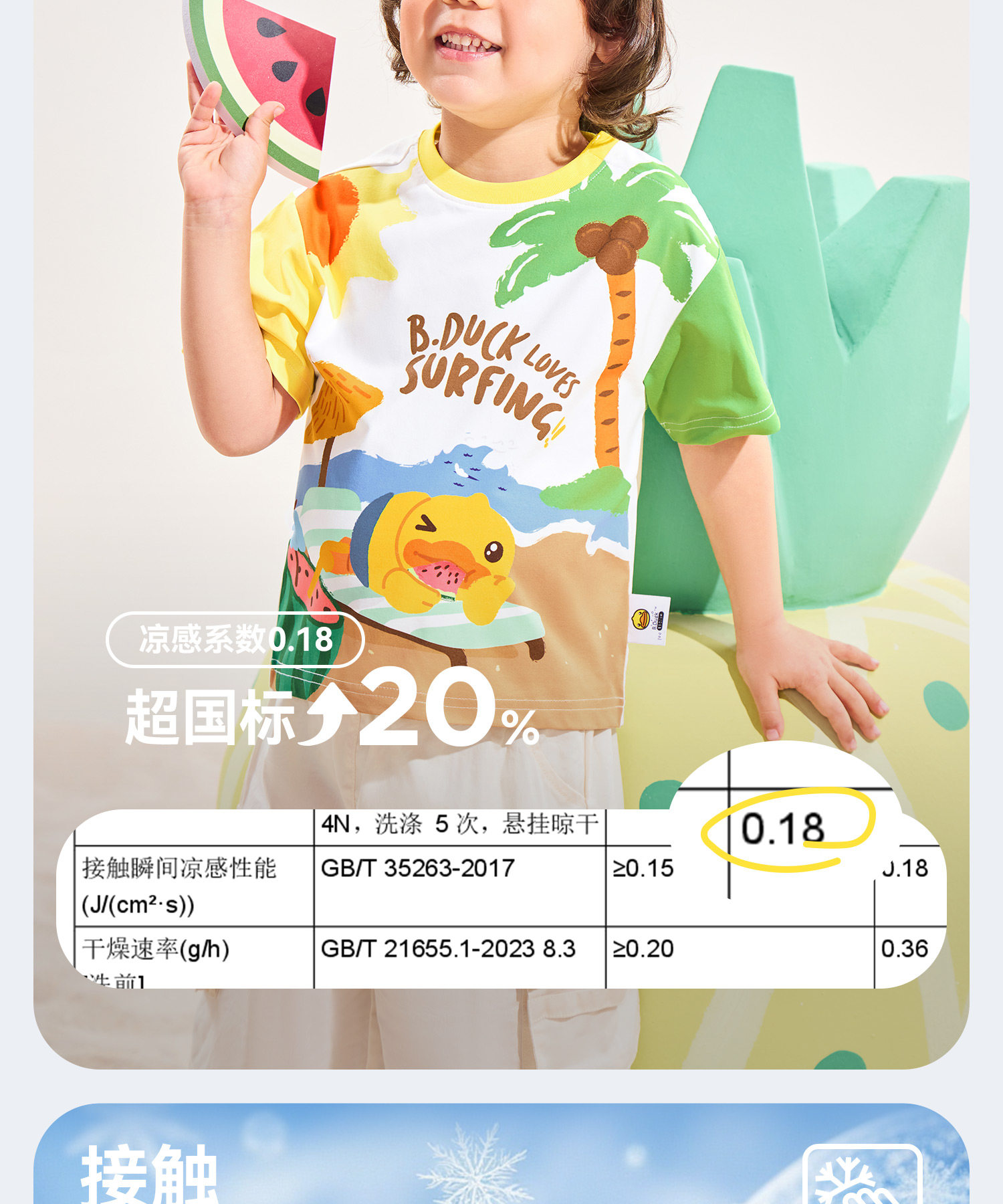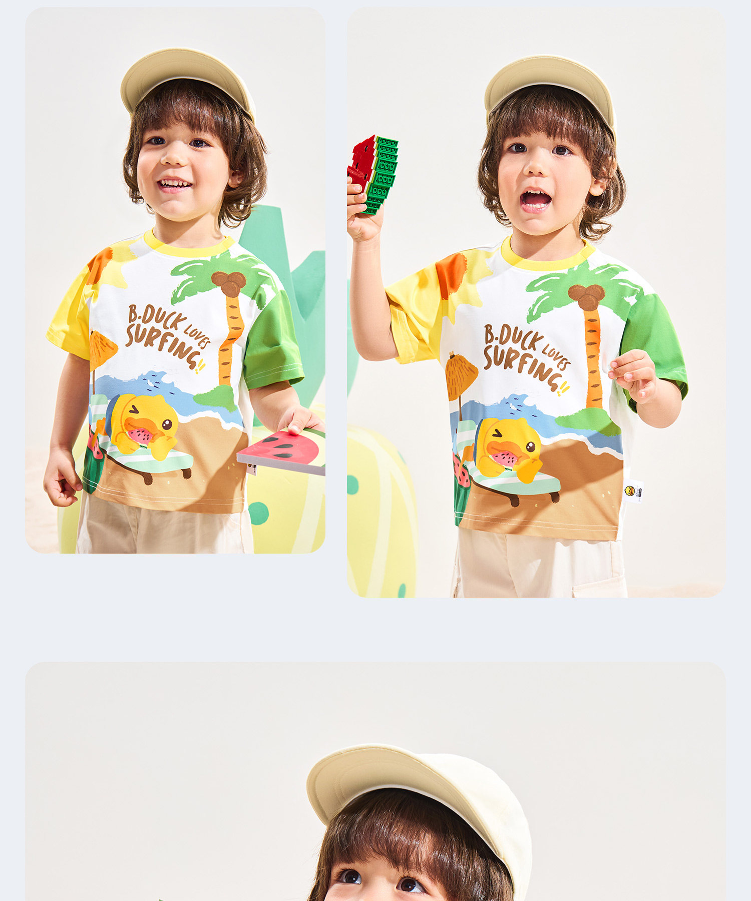 [冰感速干]bduck小黄鸭童装儿童t恤短袖男童半袖上衣宝宝夏装卡通90-150 BF2701019
