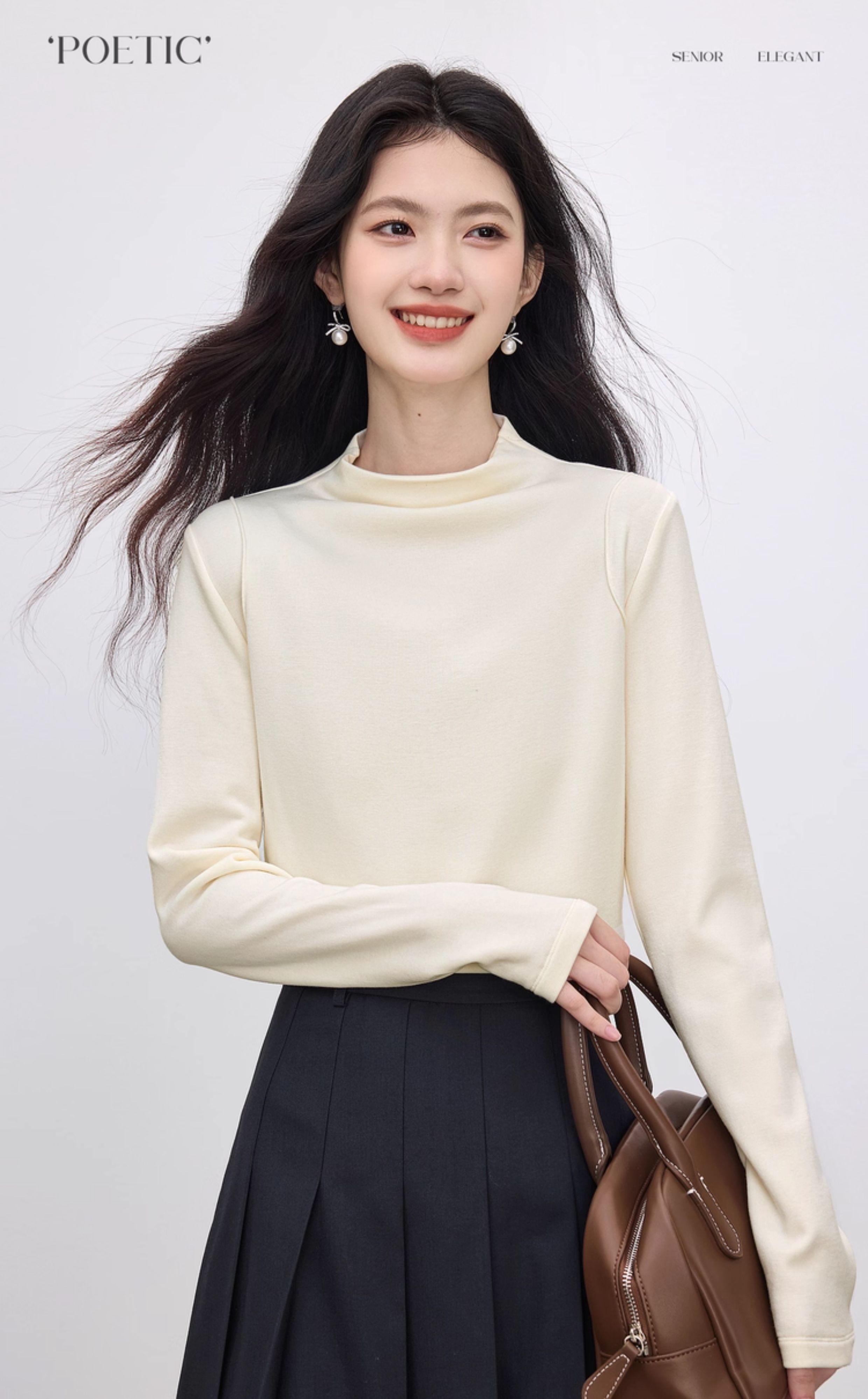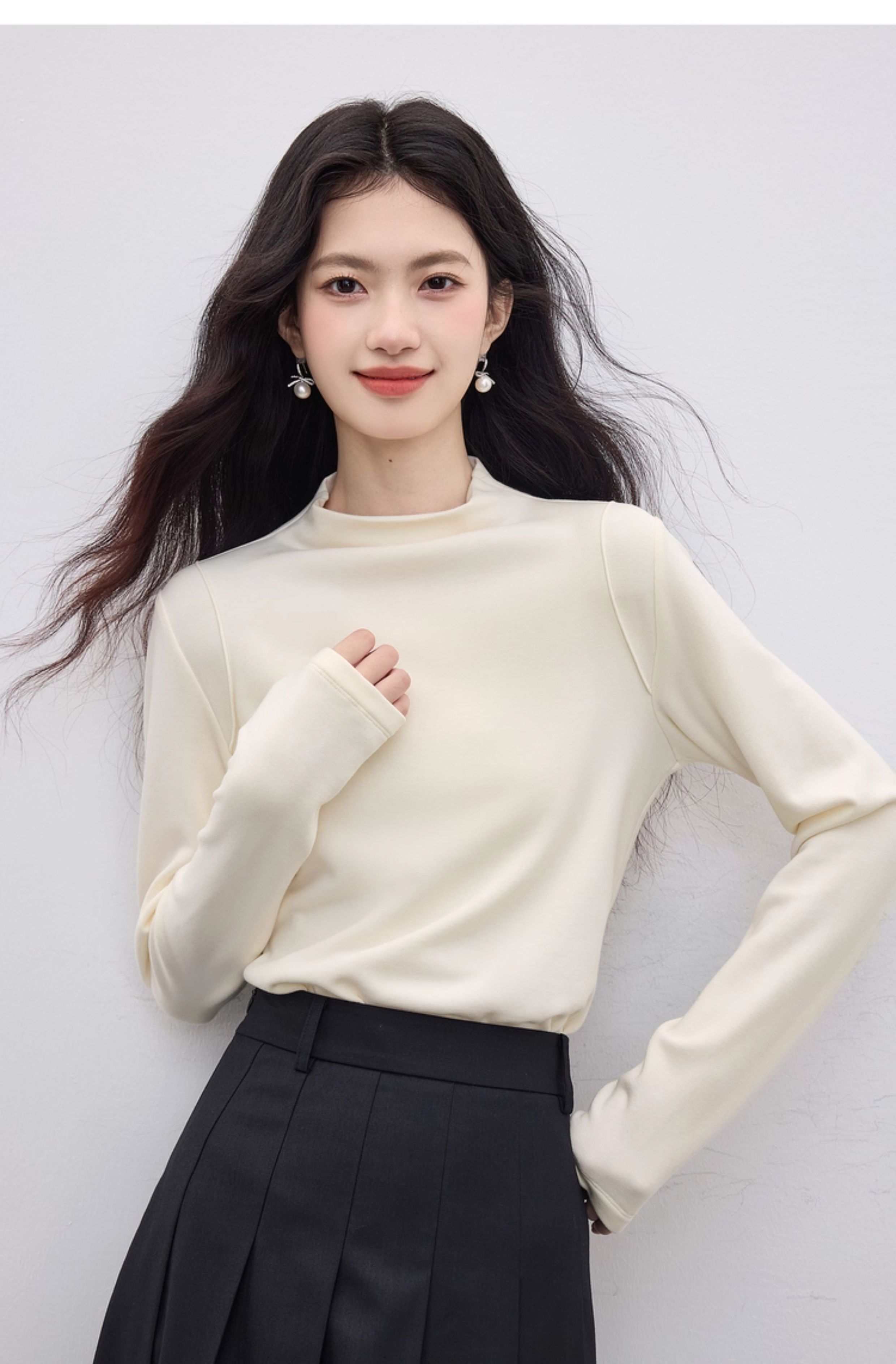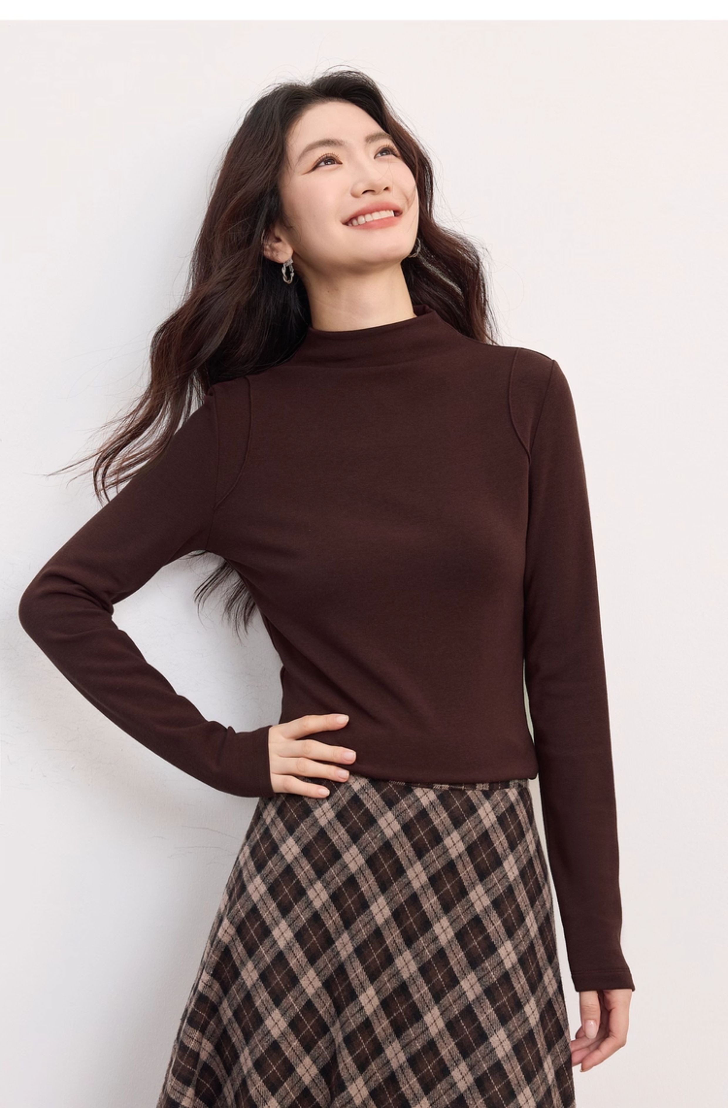 【周末秒杀】熙世界轻盈0压感半高领打底衫女2025秋冬新款通勤百搭内搭T恤上衣
