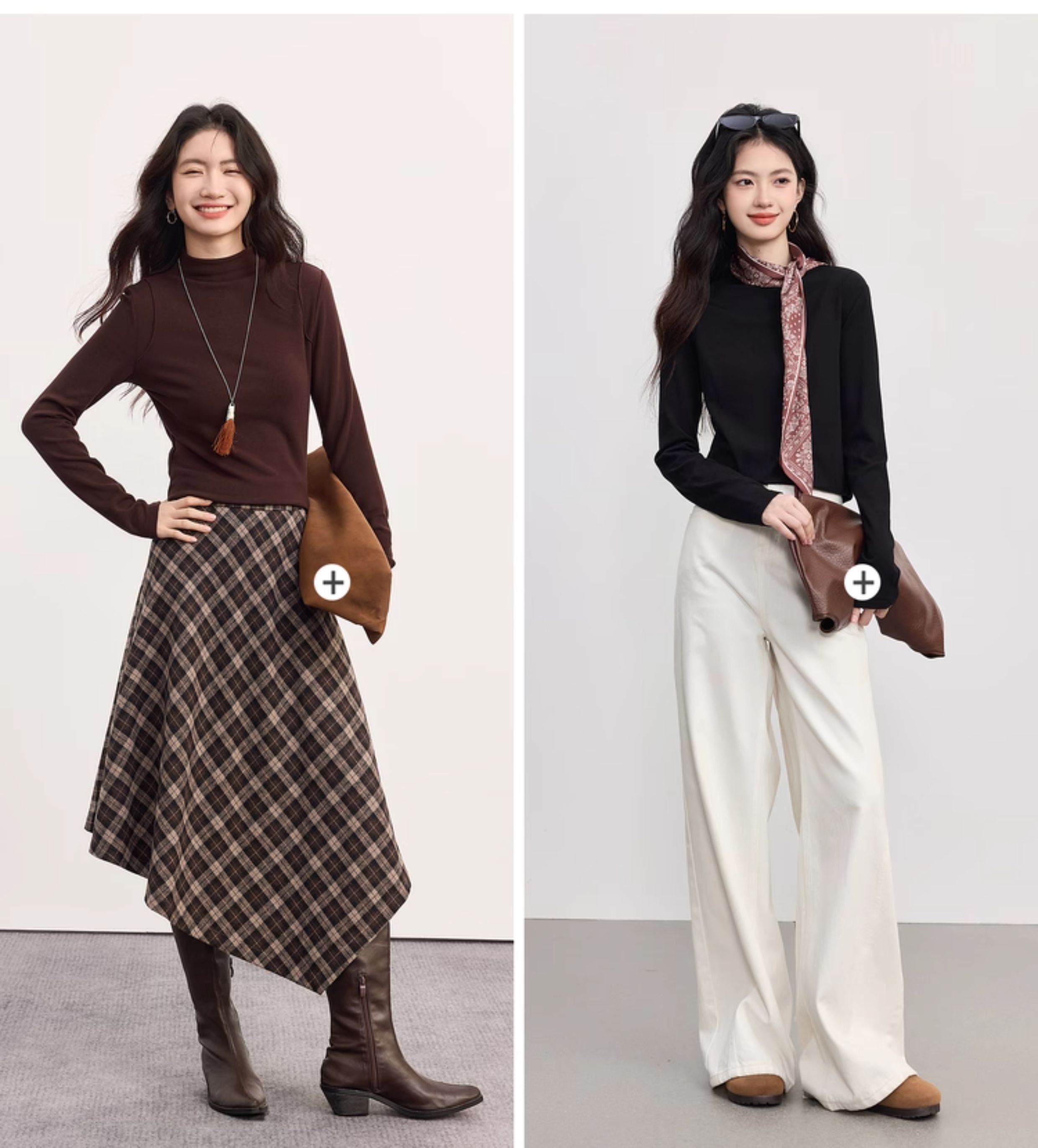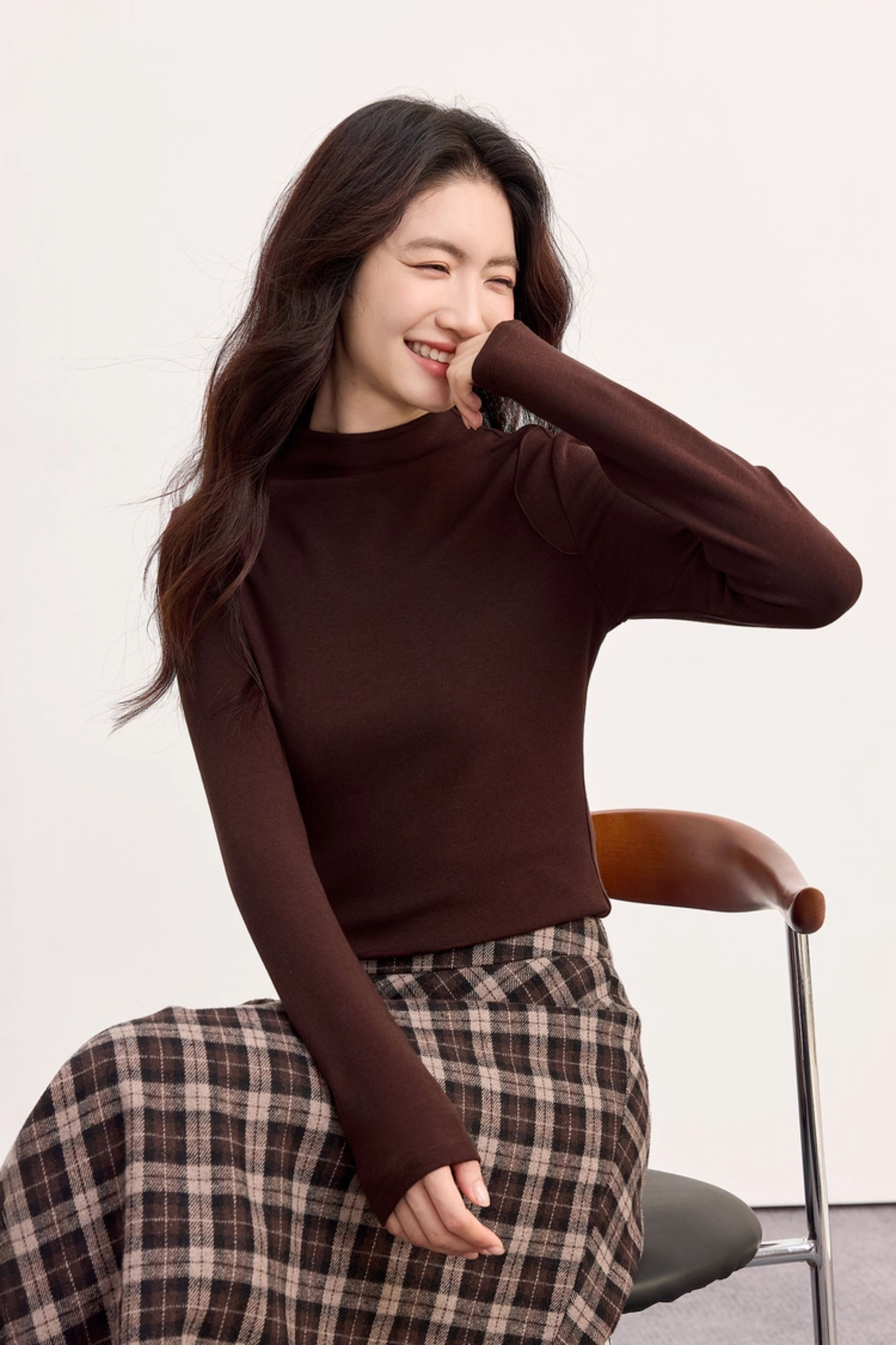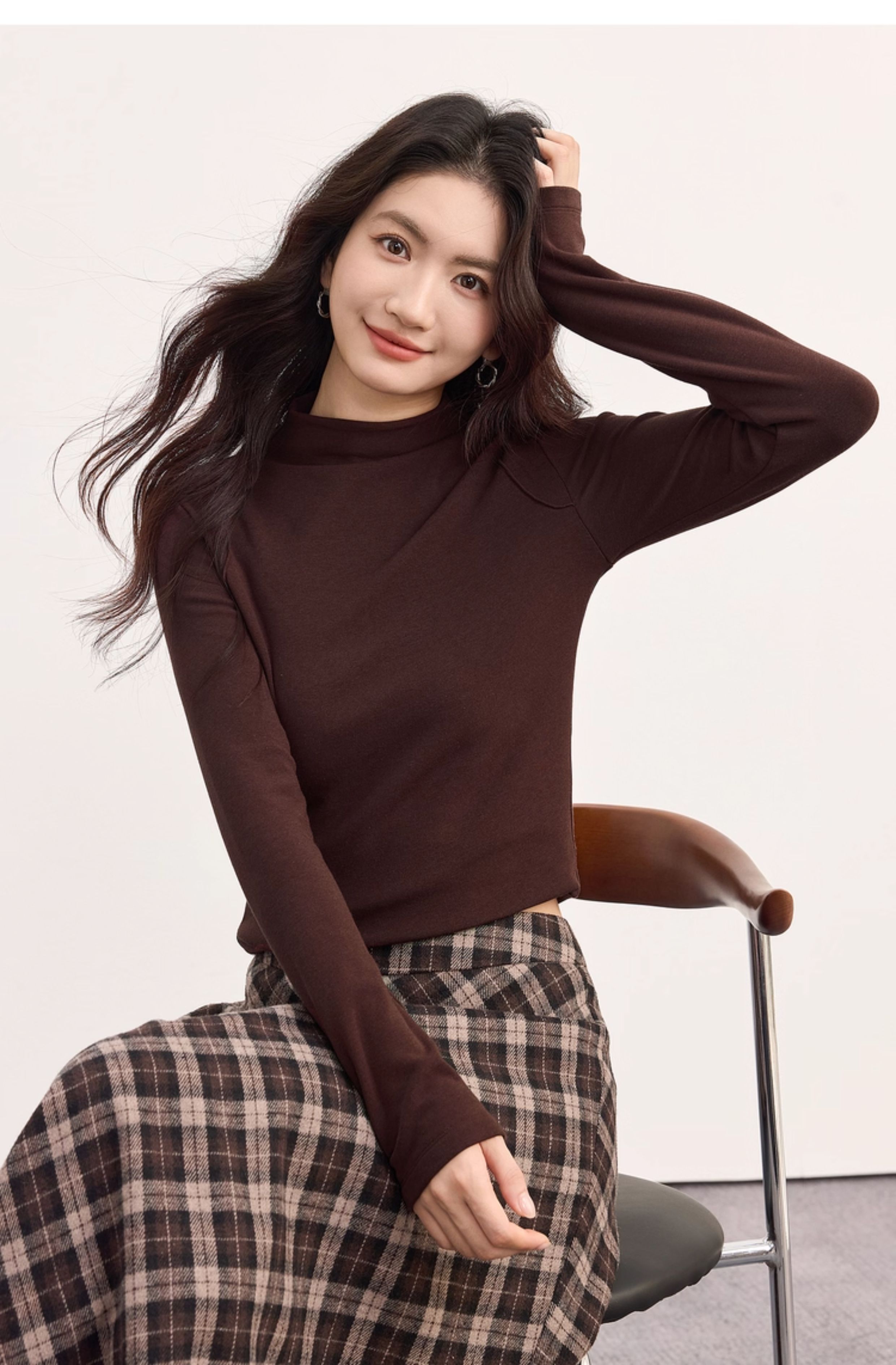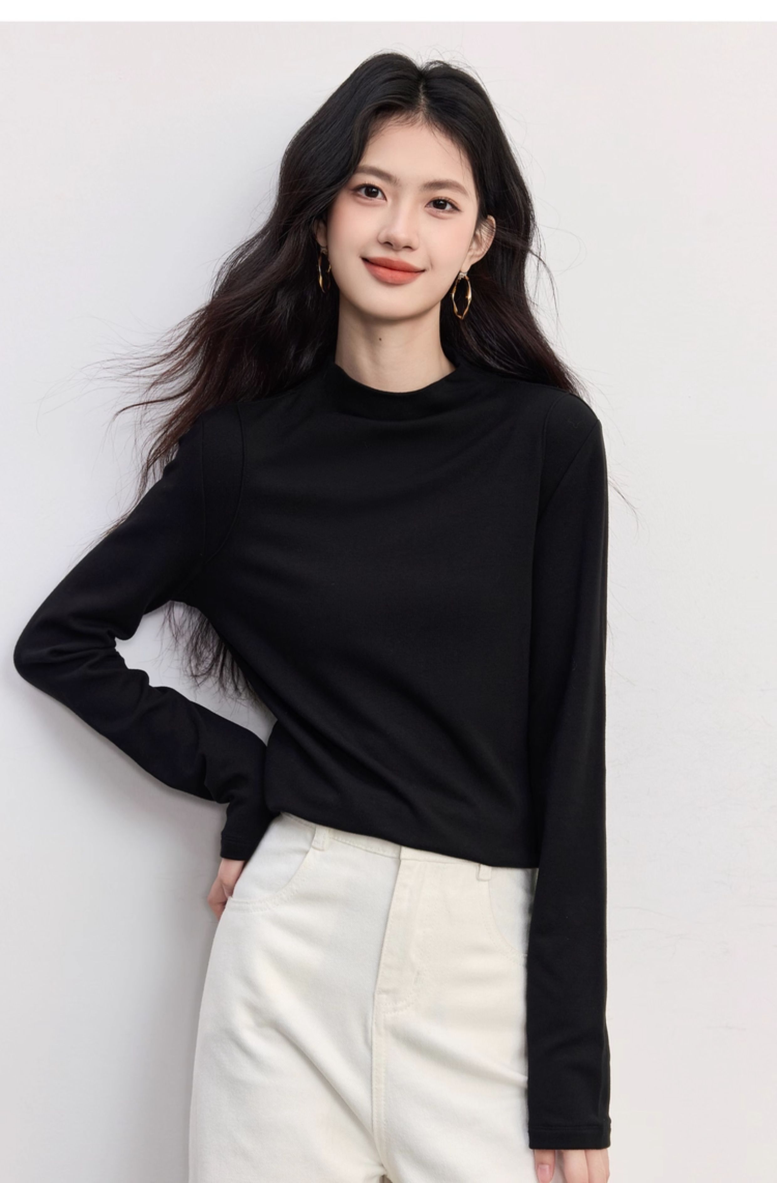 【周末秒杀】熙世界轻盈0压感半高领打底衫女2025秋冬新款通勤百搭内搭T恤上衣