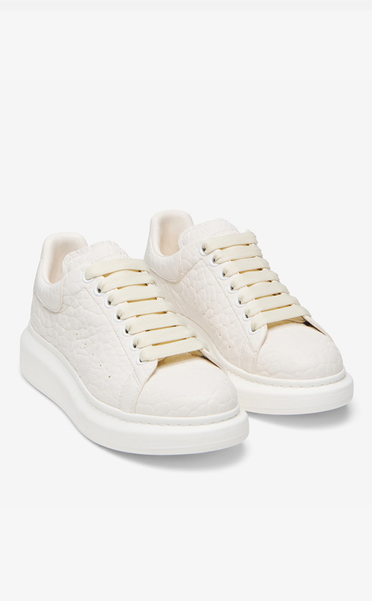 ALEXANDER MCQUEEN 麦昆 女士字母徽标粒面皮革超大休闲运动鞋 白色 808173 WHABE 9100