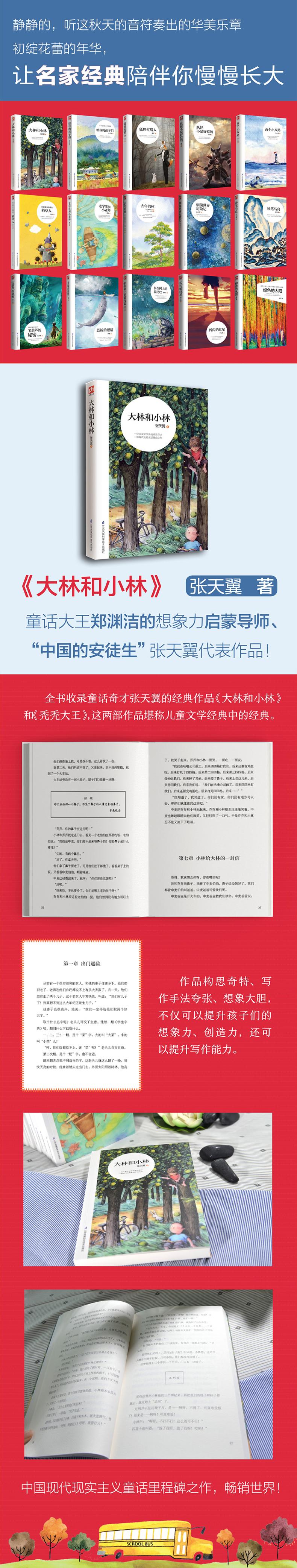 张天翼著的这本《大林和小林》是一部带有浪漫梦幻色彩的作品,也是继《稻草人》之后,中国现代文学目前第二个现实主义童话里程碑作品。该故事以奇特的构思、夸张的手法、大胆的想象、曲折的情节博得了广大小读者的喜爱。先后被翻译成多国文字,畅销海外。