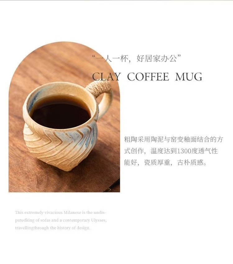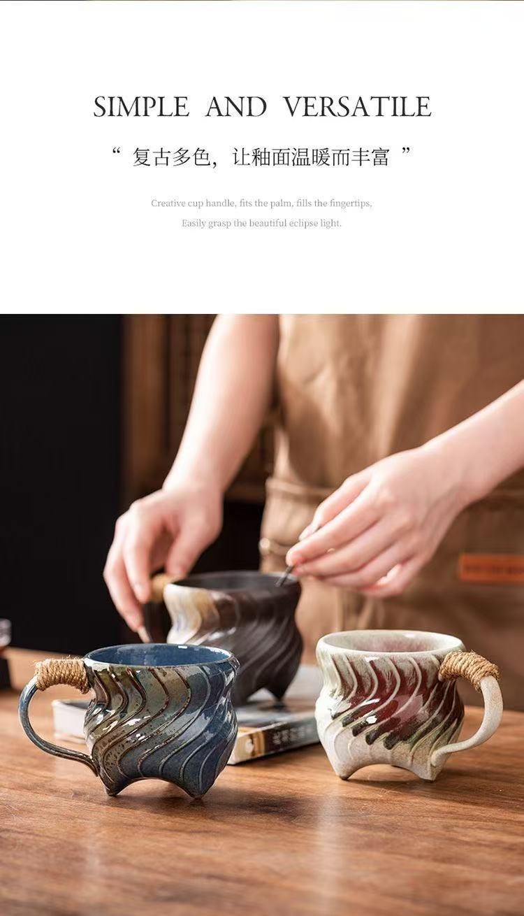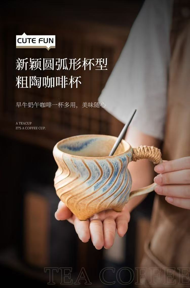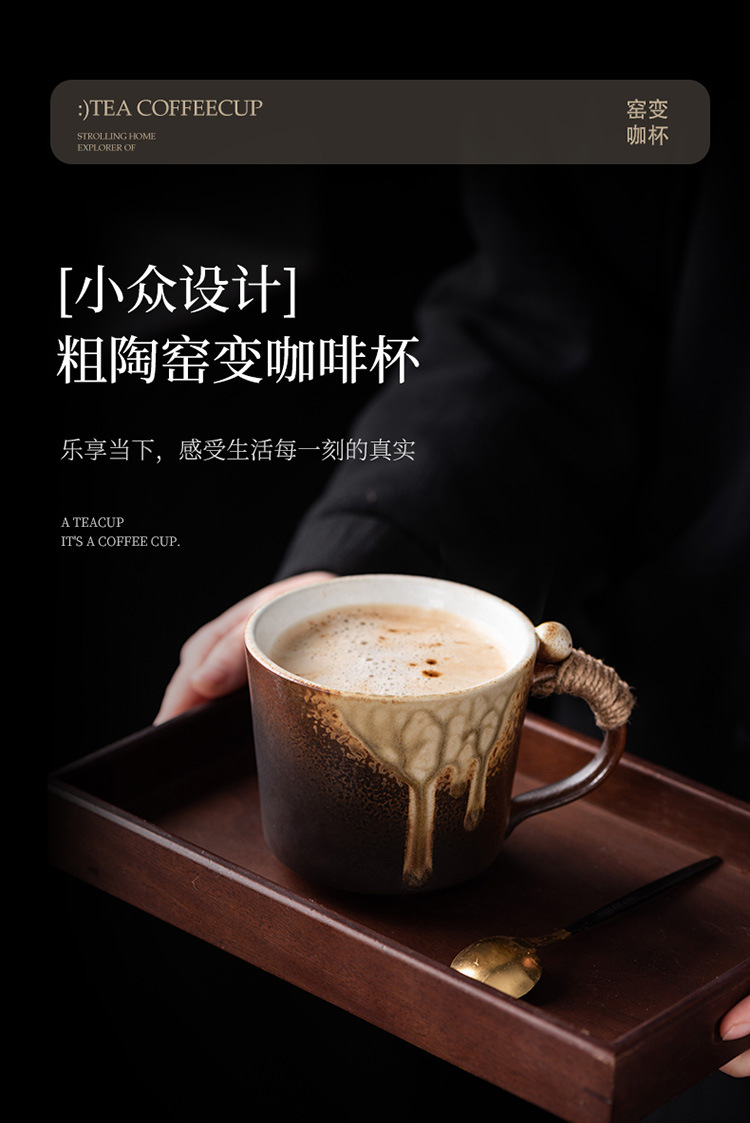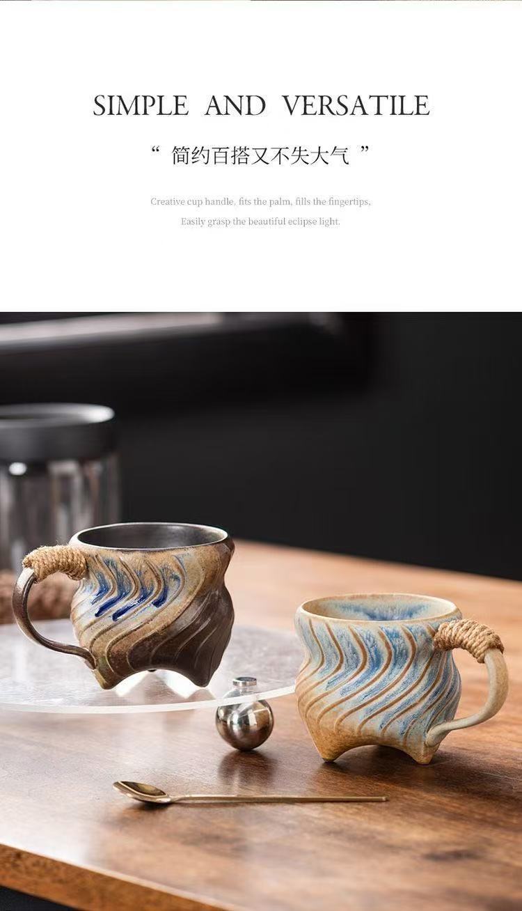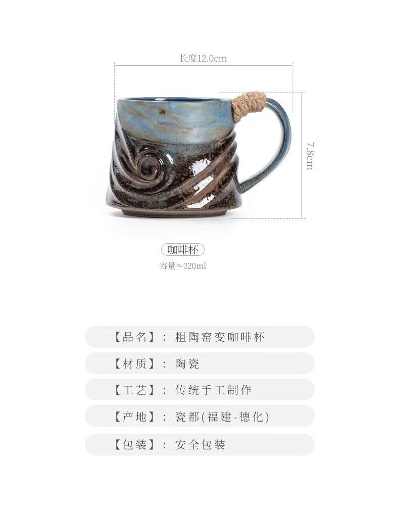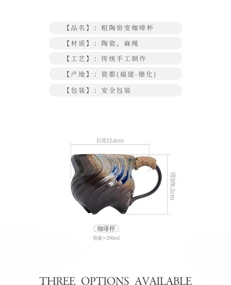 【小众设计❗️简约大气】日式陶瓷杯宅寂风杯子窑变水杯轻奢高级感粗陶马克杯高颜值咖啡杯。jb