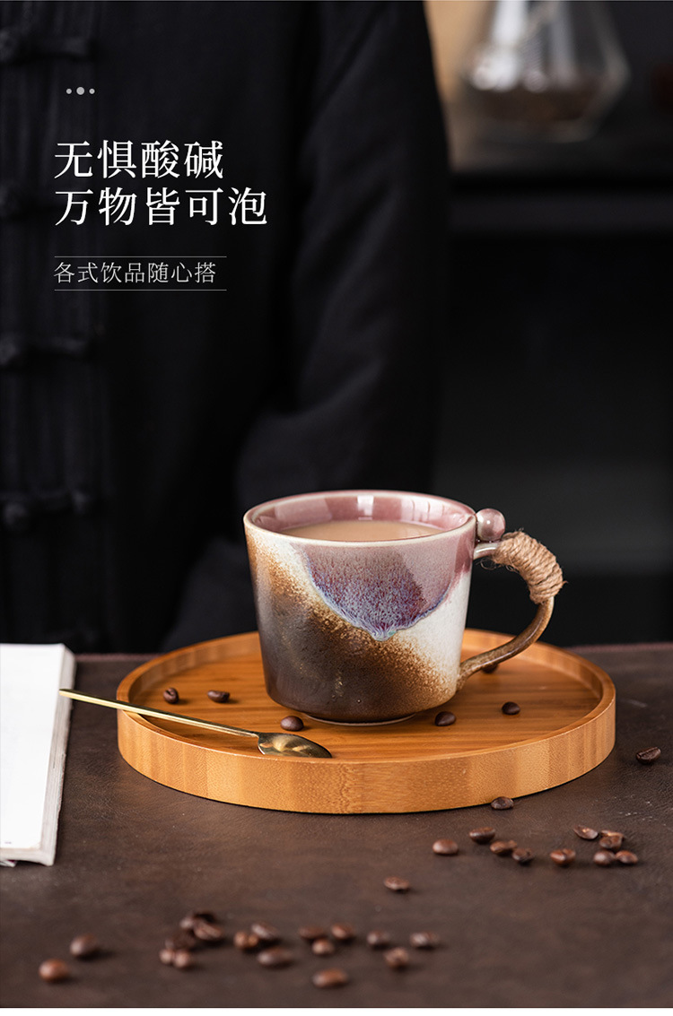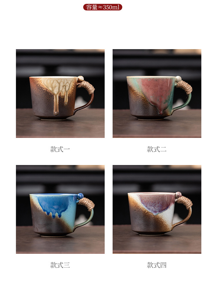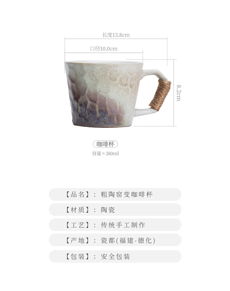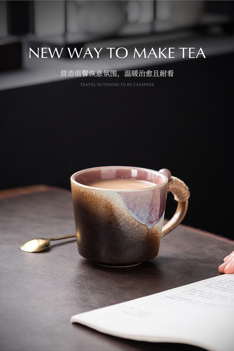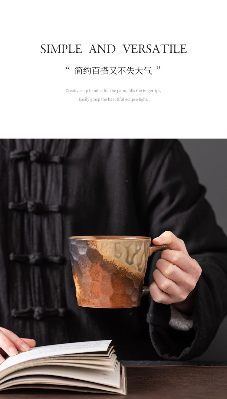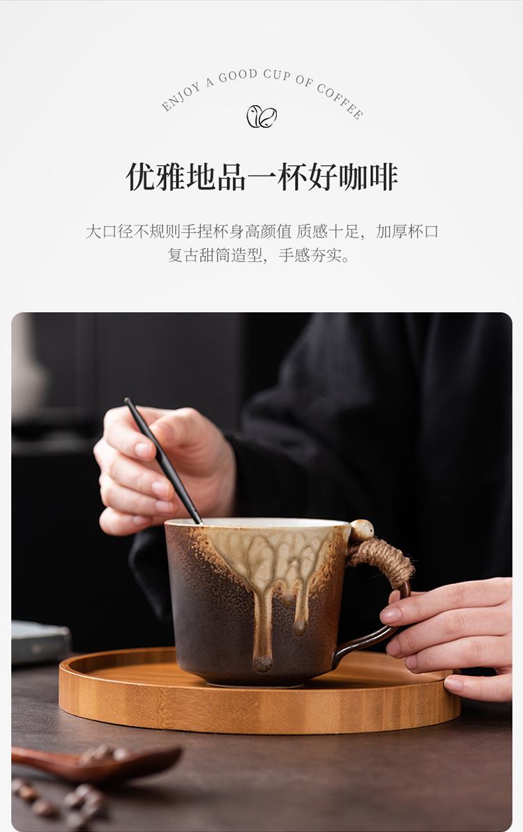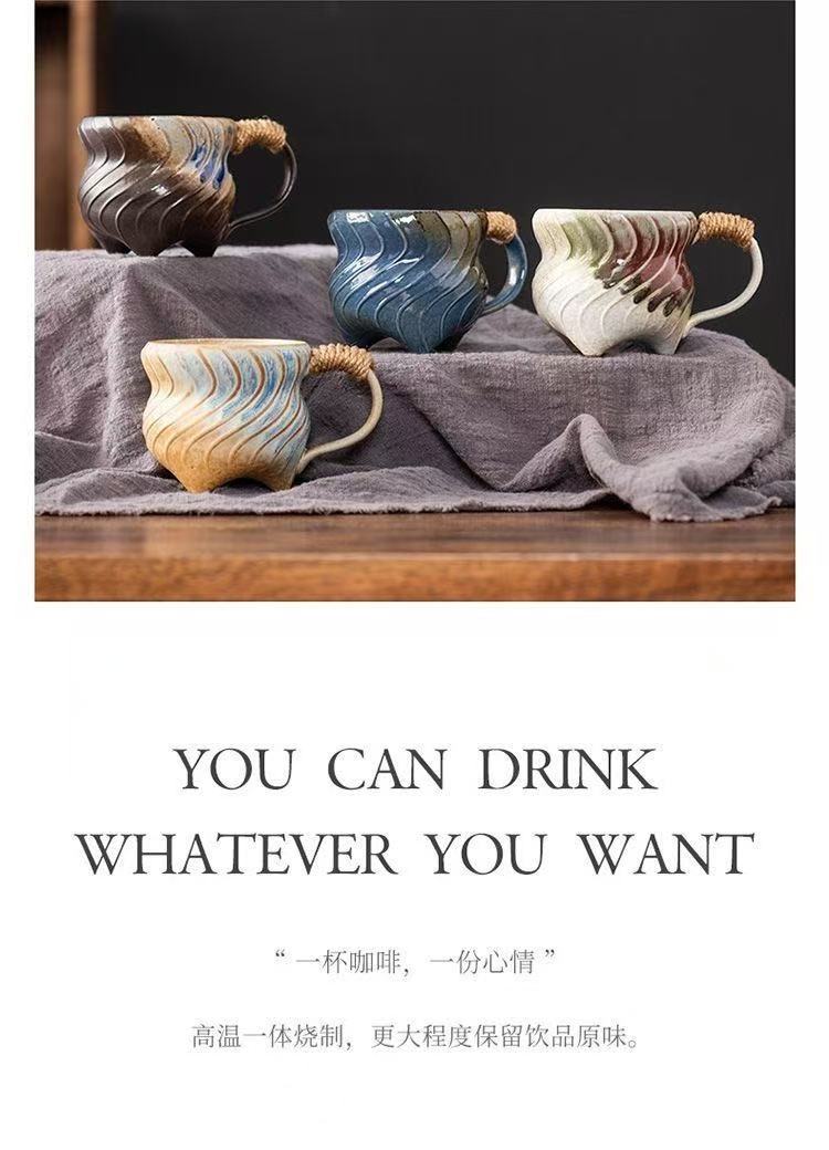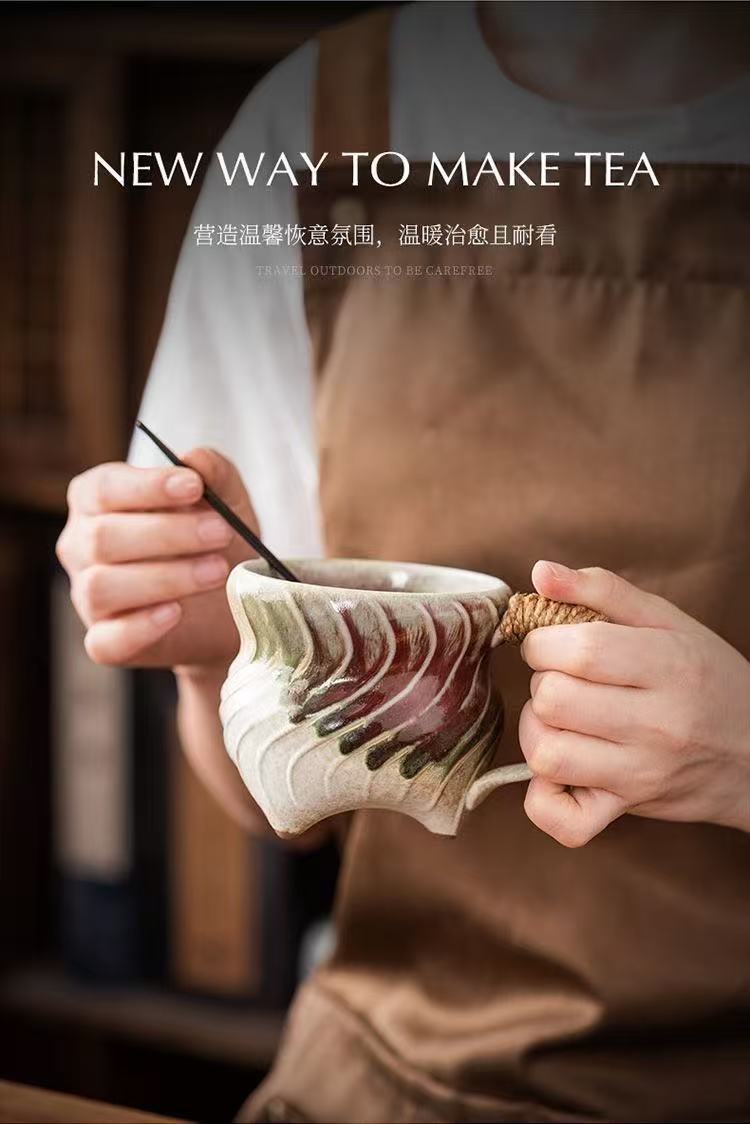 【小众设计❗️简约大气】日式陶瓷杯宅寂风杯子窑变水杯轻奢高级感粗陶马克杯高颜值咖啡杯。jb