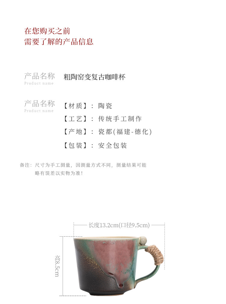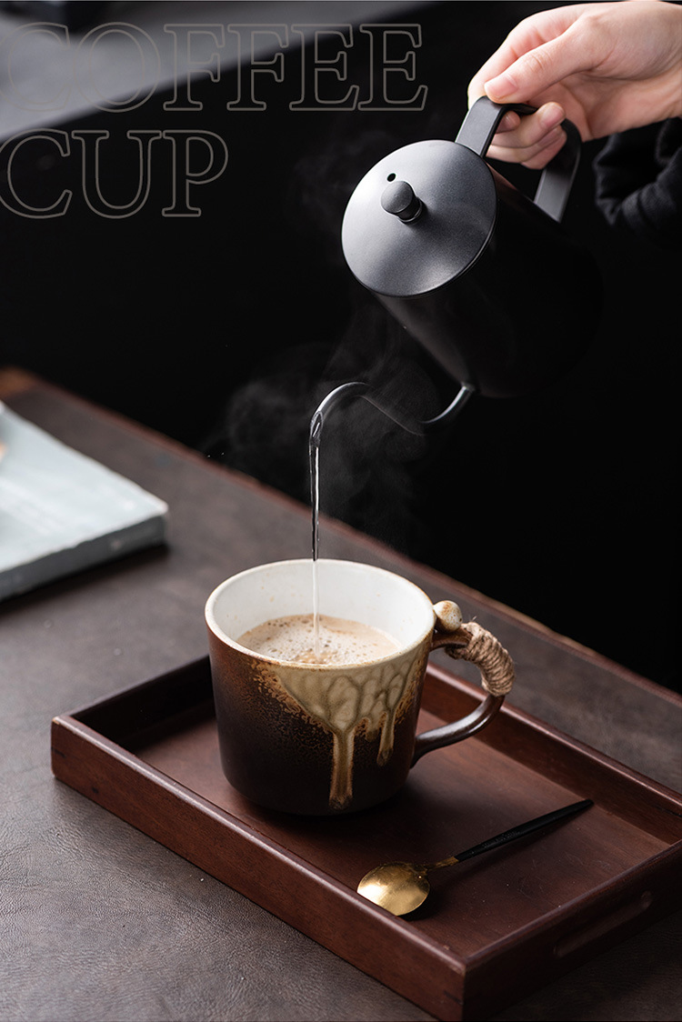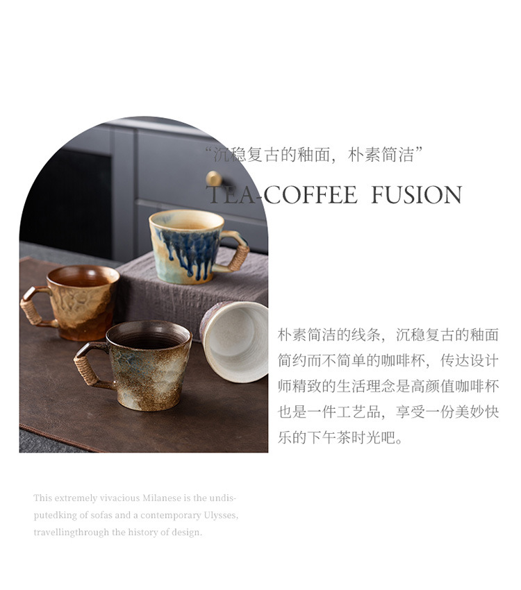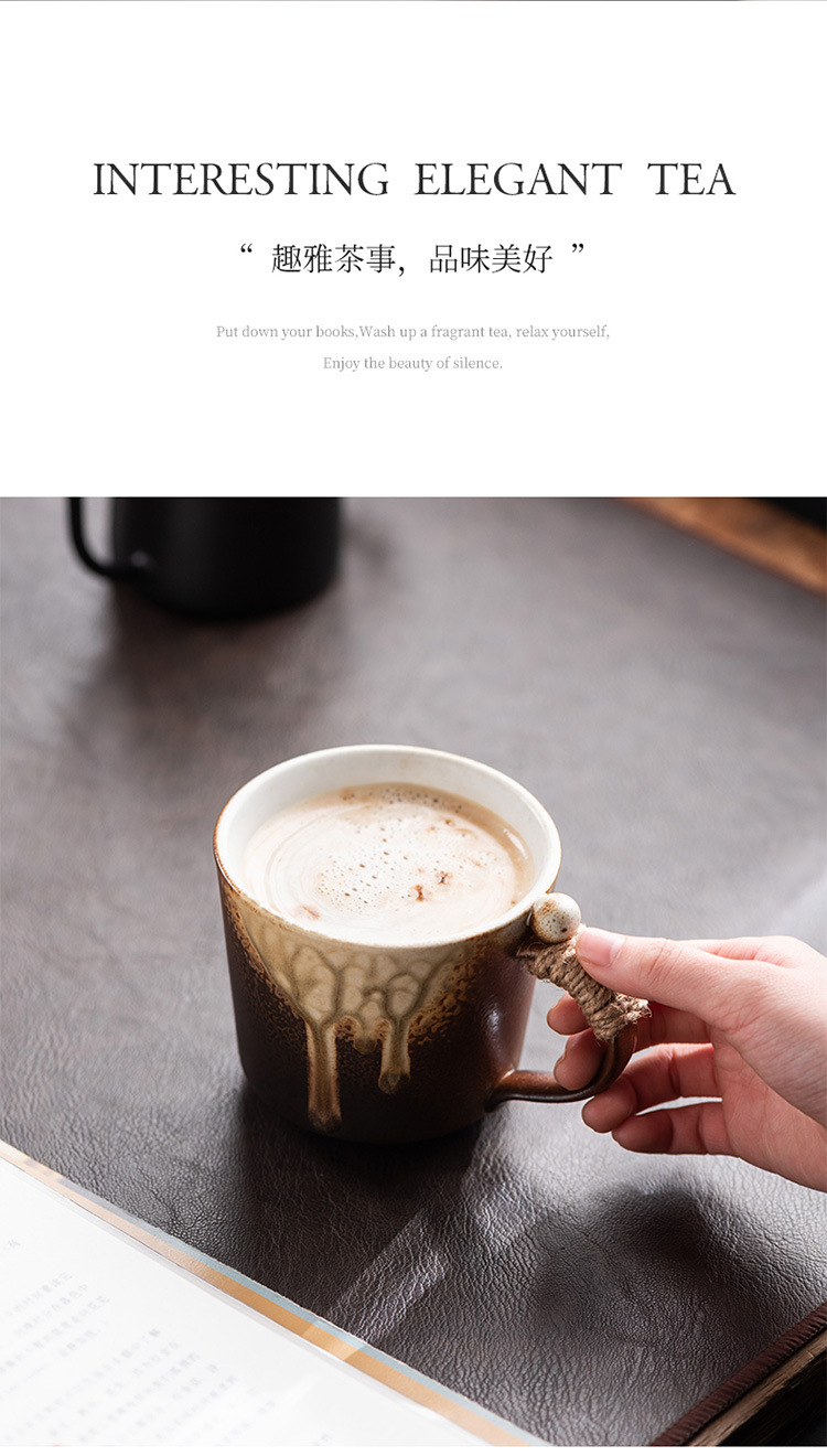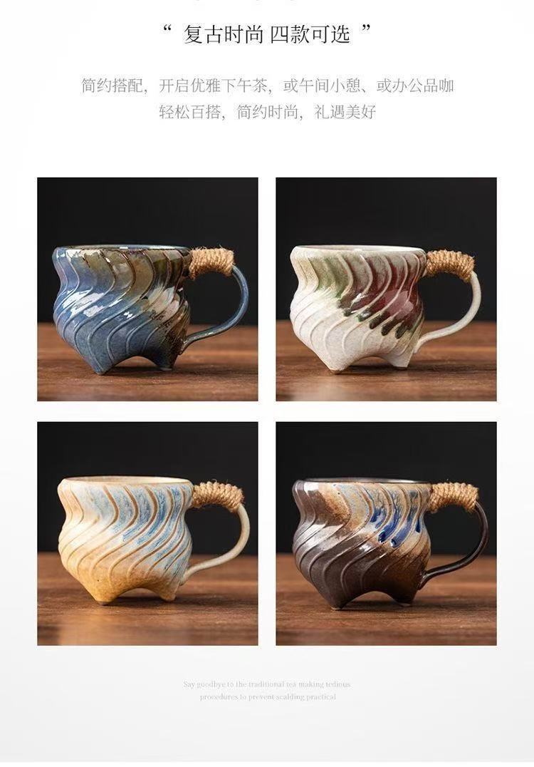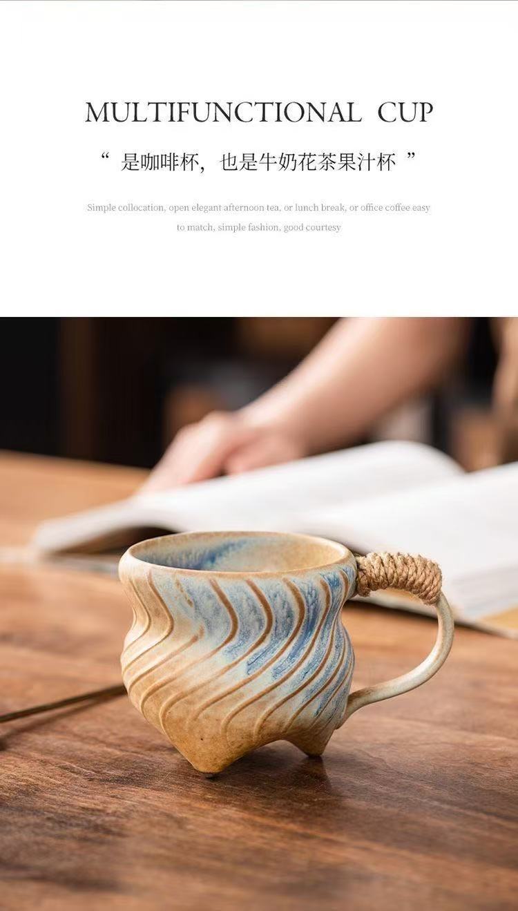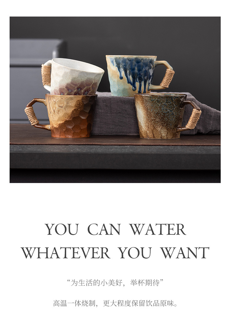 【小众设计❗️简约大气】日式陶瓷杯宅寂风杯子窑变水杯轻奢高级感粗陶马克杯高颜值咖啡杯。jb