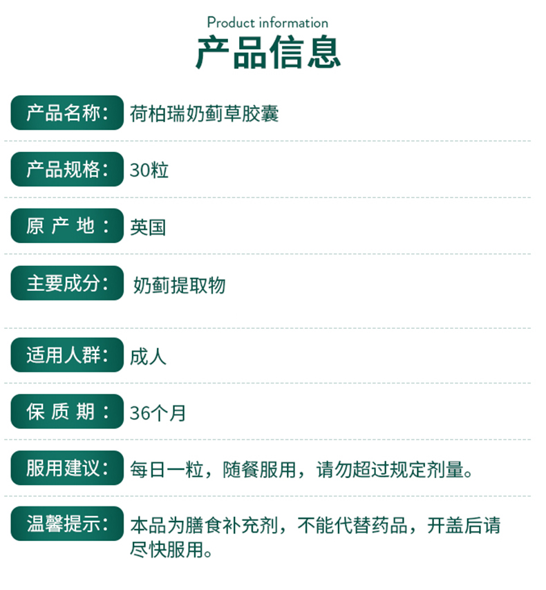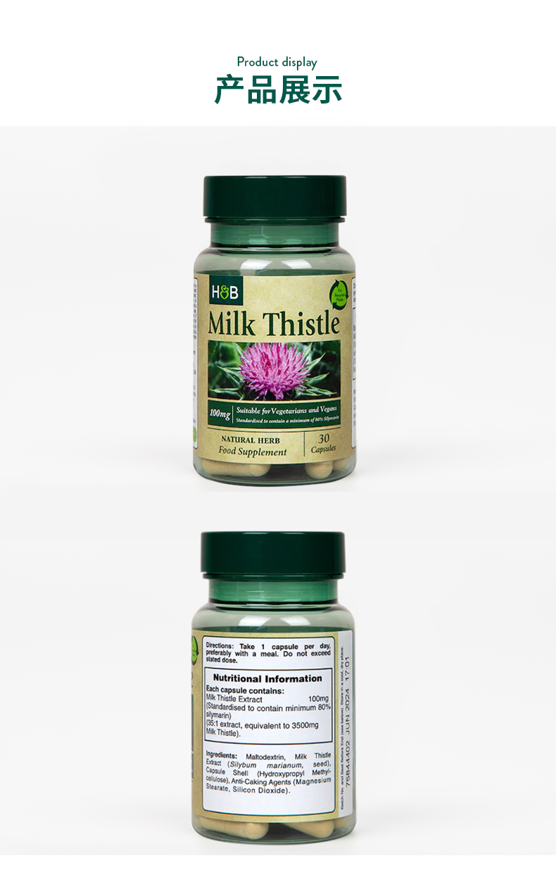 英国HB荷柏瑞奶蓟草精华胶囊30粒/瓶