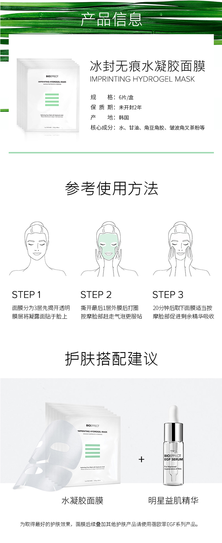 保税直发 BIOEFFECT 蓓欧菲 水凝胶面膜 6片/盒
