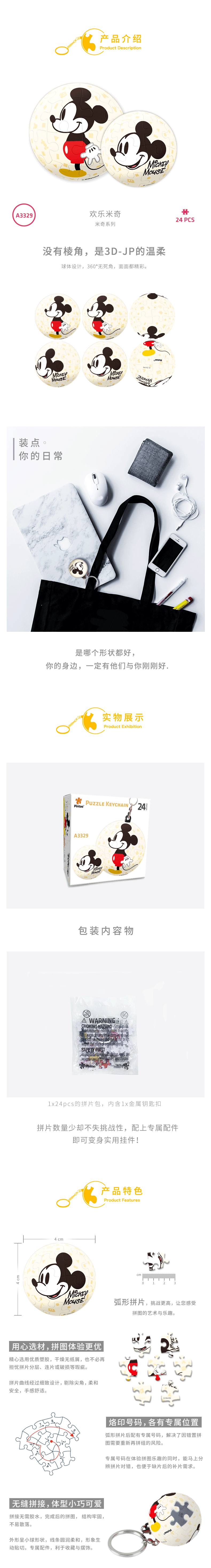 24片 钥匙扣拼图 塑料拼图A3329 米奇系列-欢乐米奇