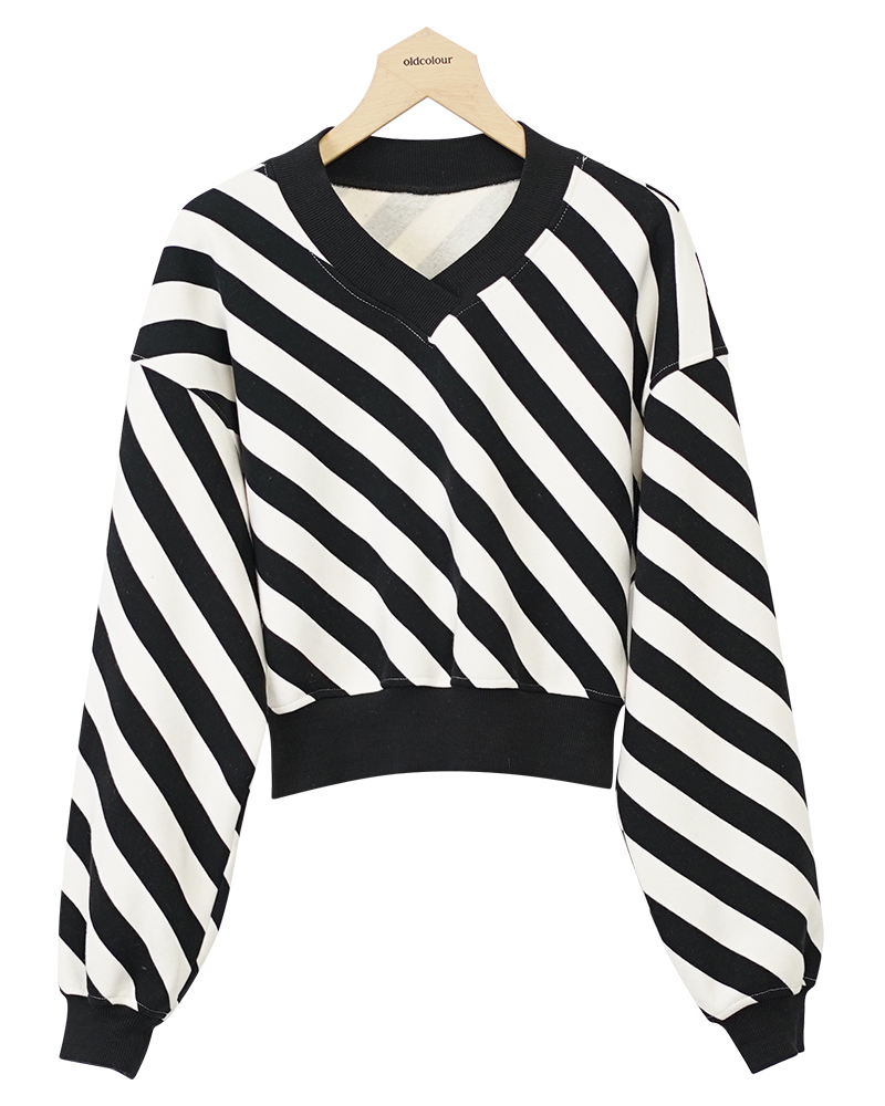 oldcolourV领条纹卫衣冬季新款简约气质直筒短款T恤女O42024284
