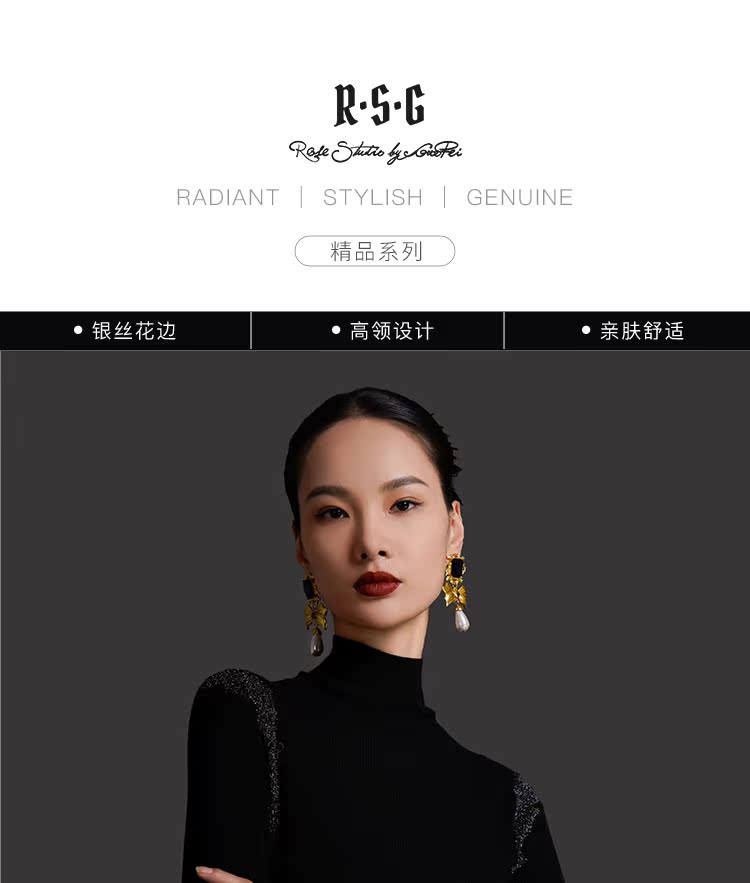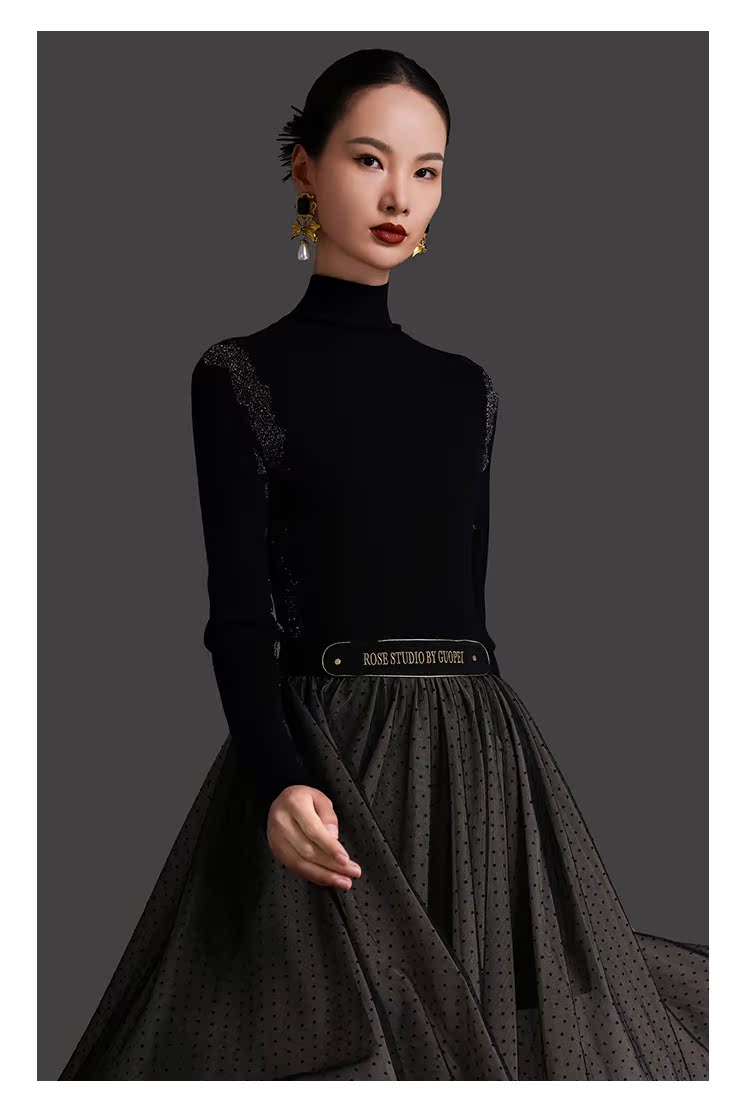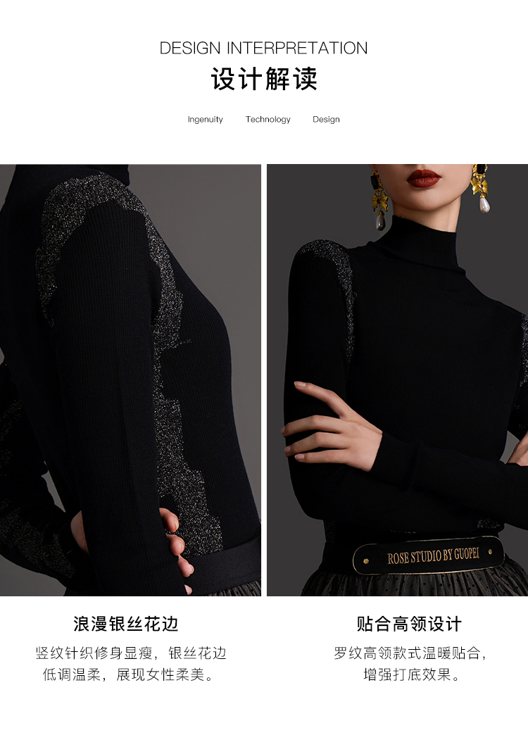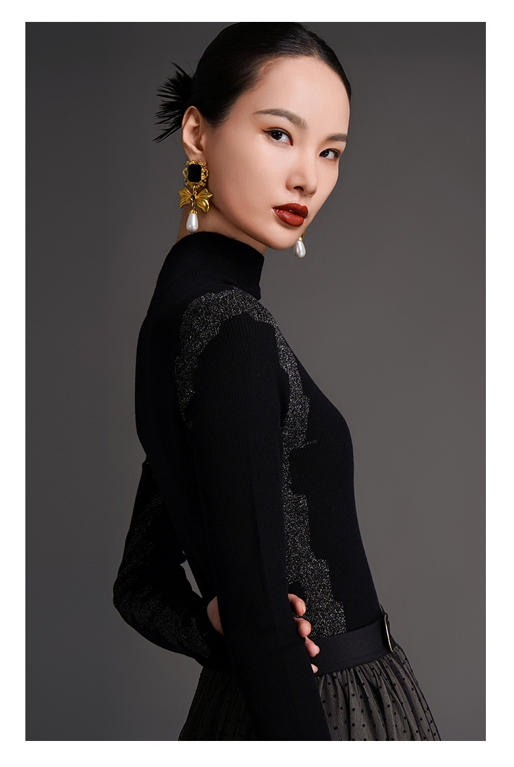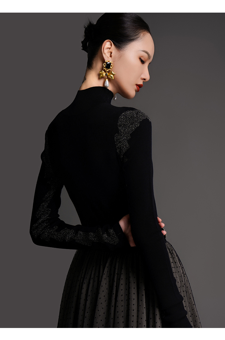 RSG2023郭培线上成衣品牌早秋修身显瘦银丝花边装饰打底针织毛衣
