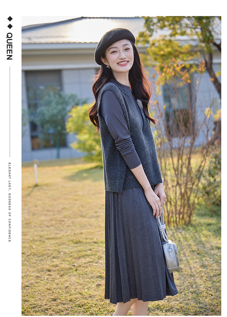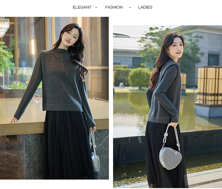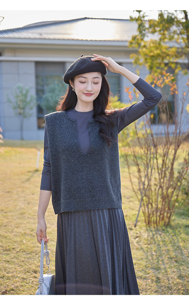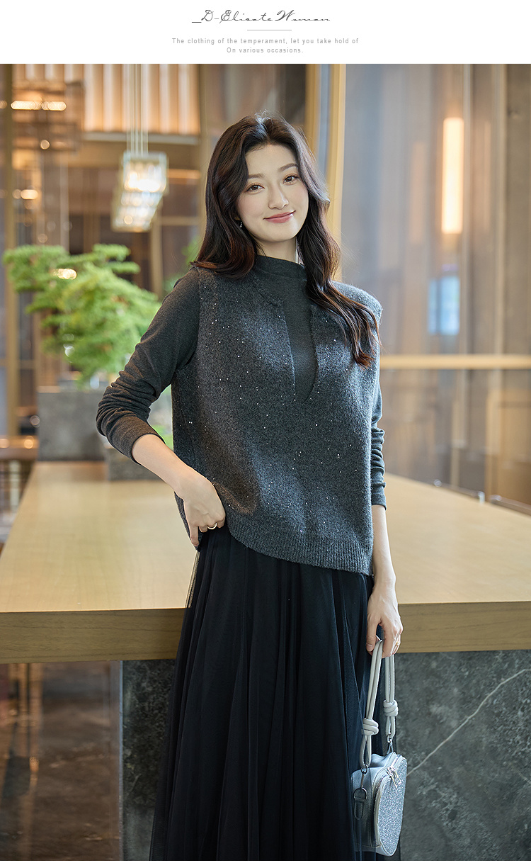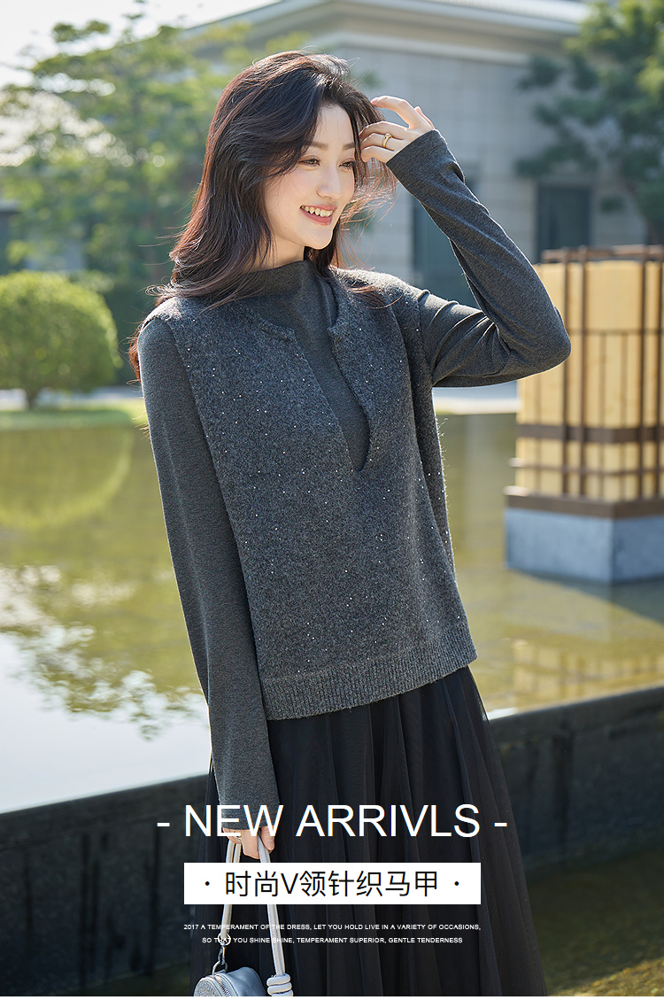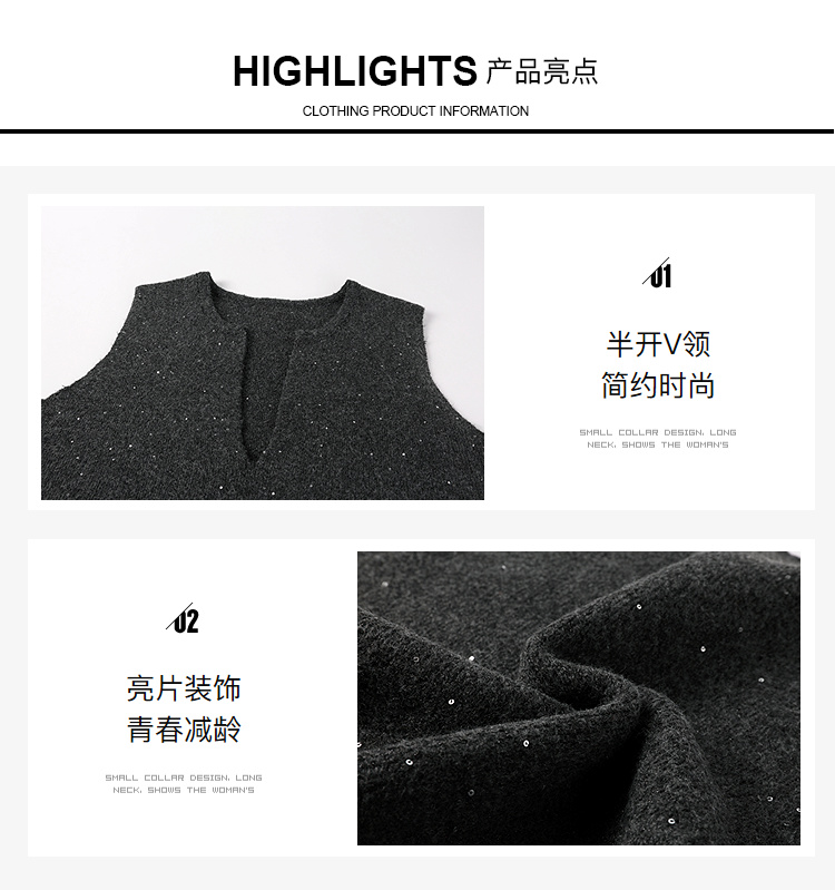 奢姿大码女装2025冬季胖妹妹时尚深V领针织马甲气质休闲显瘦上衣9854691093