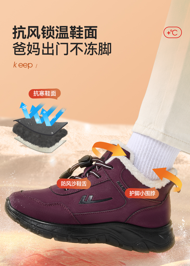 回力老人棉鞋女冬季加绒加厚中老年人女士保暖奶奶雪地靴妈妈鞋子
