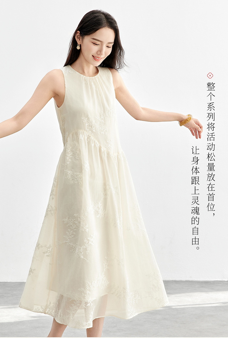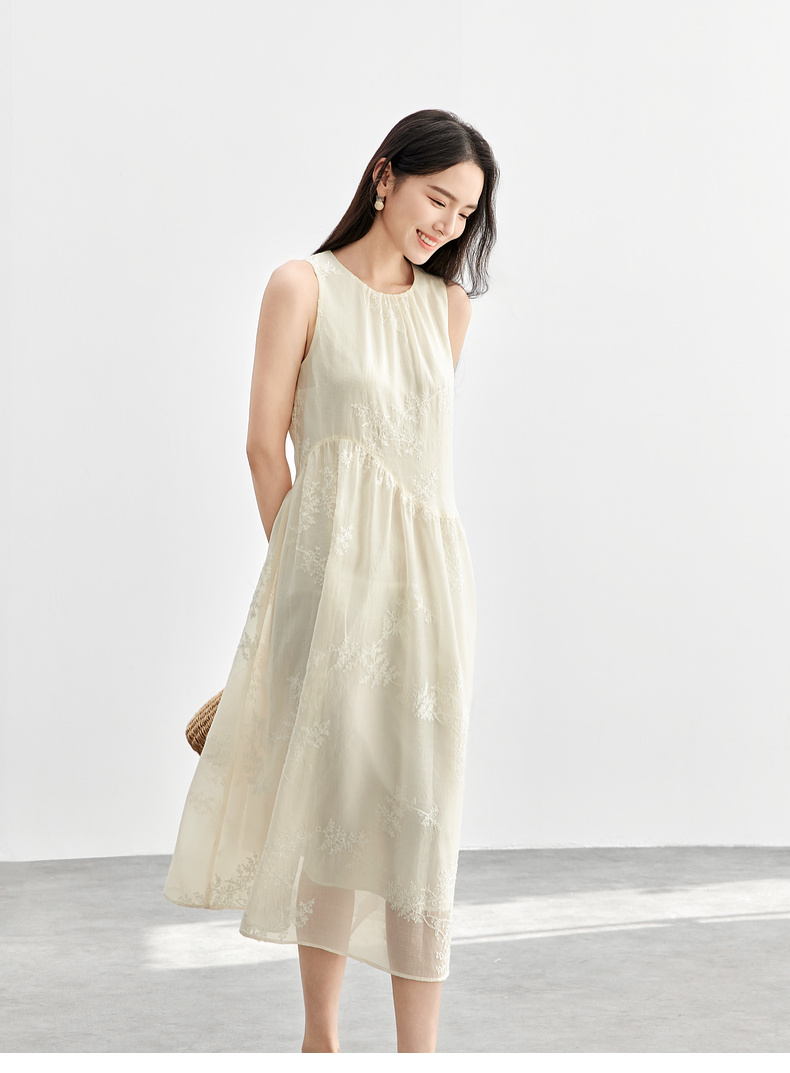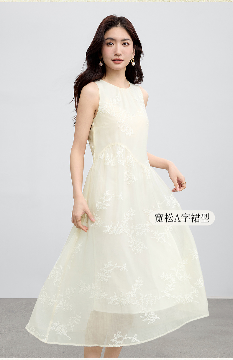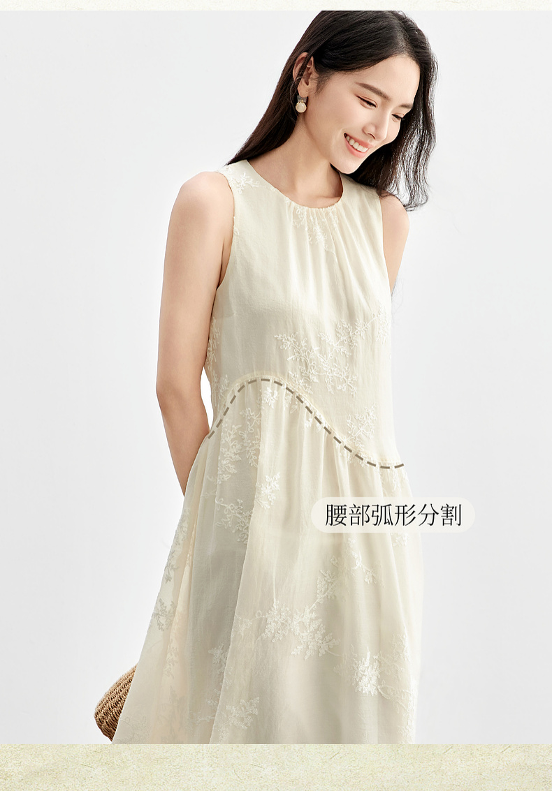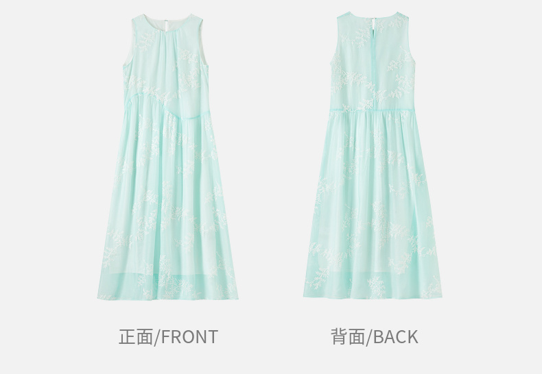通勤优雅浪漫肌理感圆领不规则分割拼接垂坠A字无袖背心连衣裙-151L58207