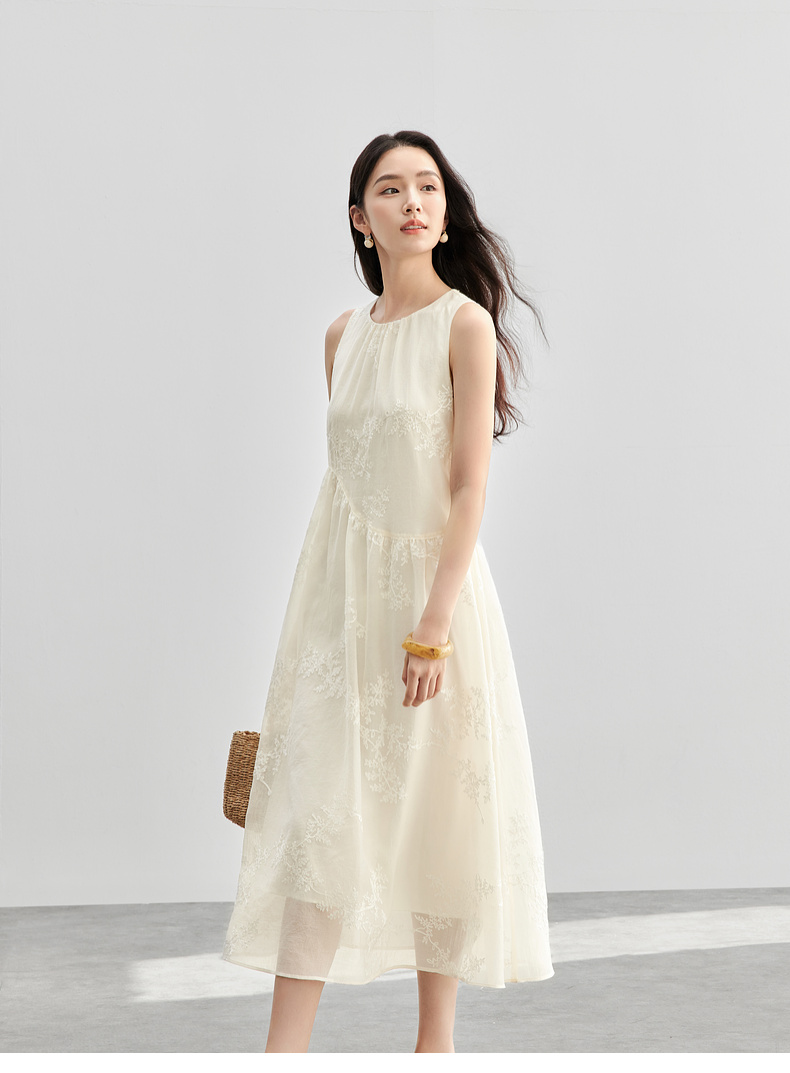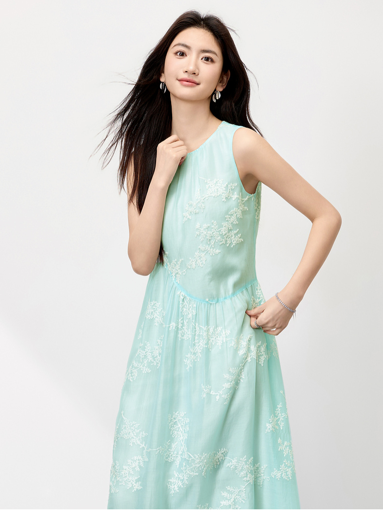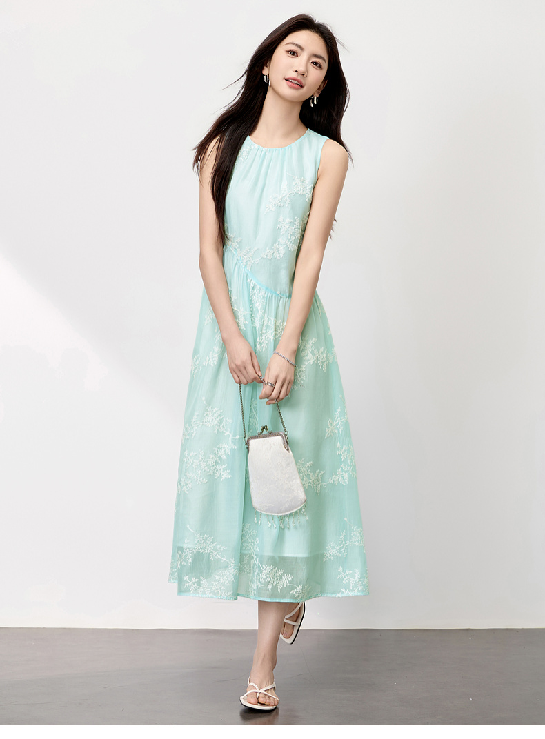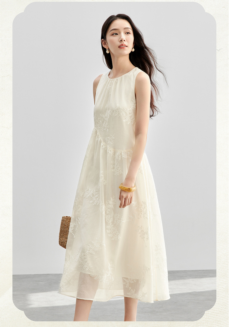 通勤优雅浪漫肌理感圆领不规则分割拼接垂坠A字无袖背心连衣裙-151L58207