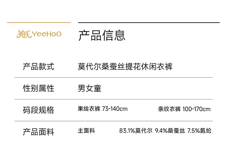 英氏童装儿童家居服套装蚕丝睡衣男童女童居家服YLTAJ1S010A YLCAJ1S008A