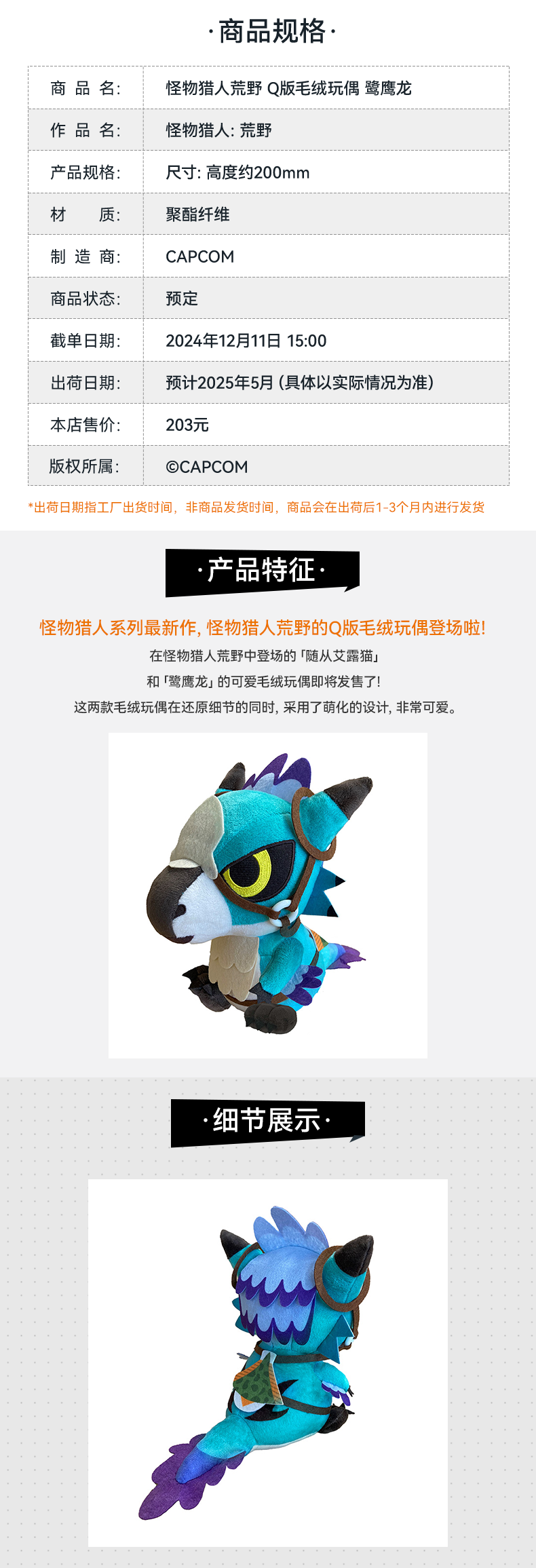 【GSC现货】怪物猎人荒野 Q版毛绒玩偶 鹭鹰龙