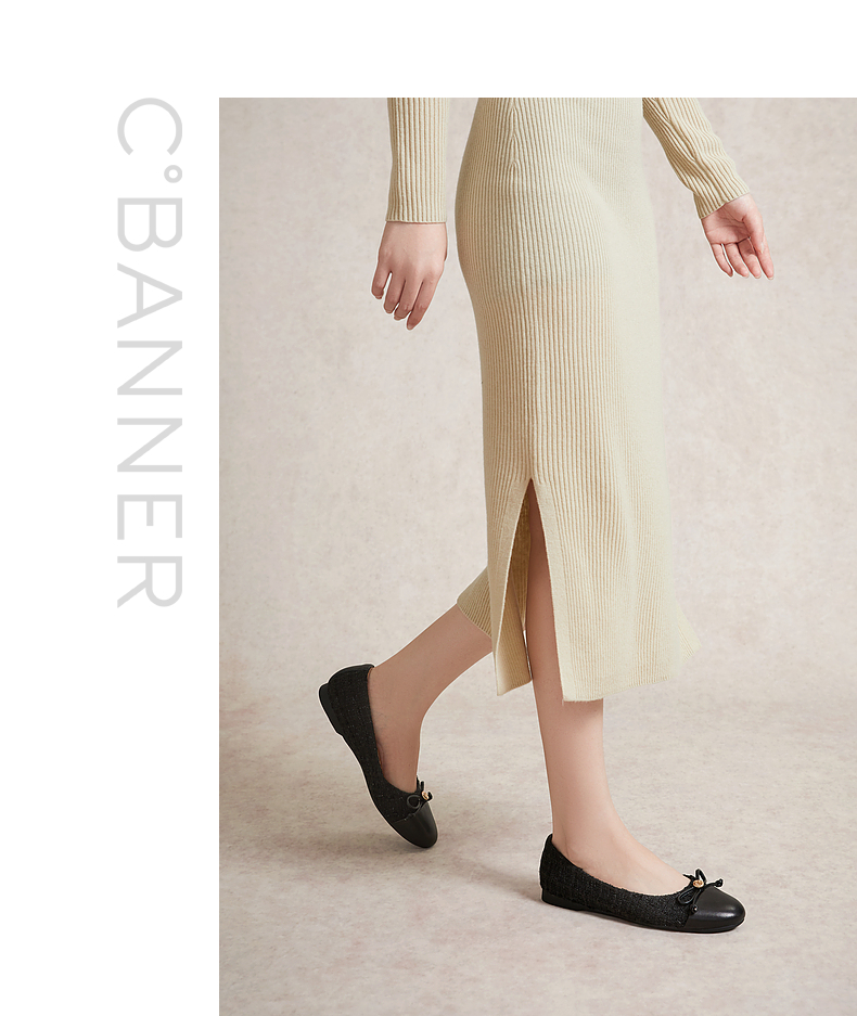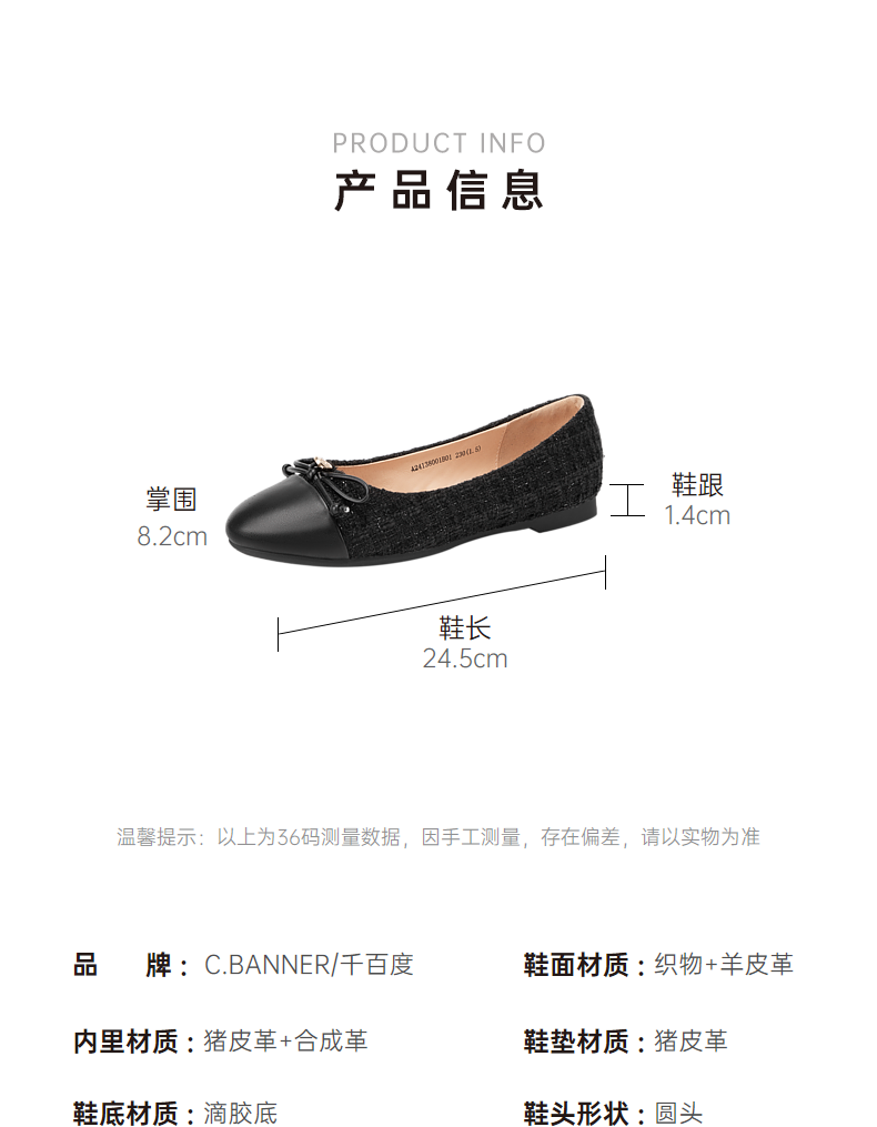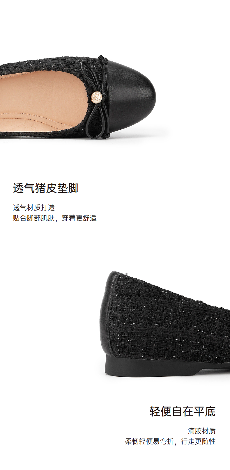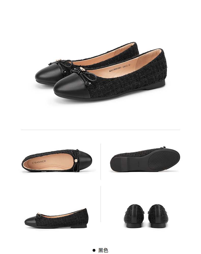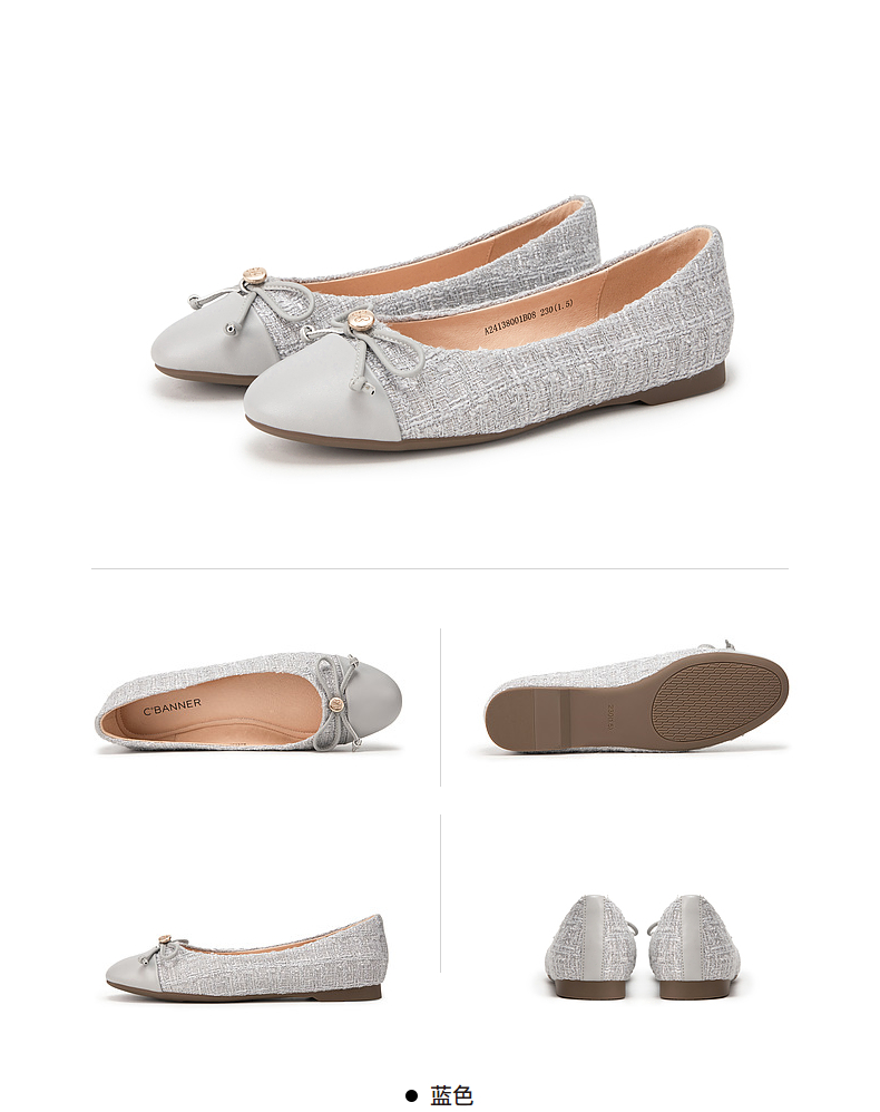 千百度小香风单鞋女春季浅口平底鞋拼接晚晚鞋轻便休闲A24138001