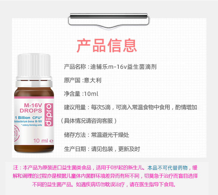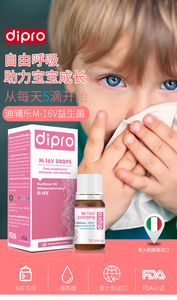 dipro迪辅乐m16v益生菌婴幼儿宝宝婴儿童调理肠胃短双歧杆菌滴剂