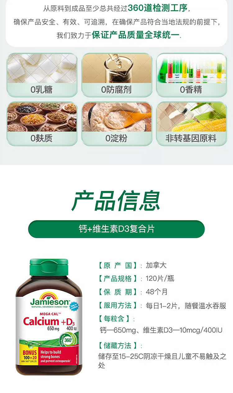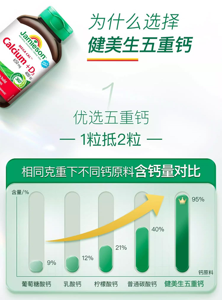 【分销】Jamieson健美生钙+维生素D3复合片120片五重钙源强健骨骼促进钙吸收健美生