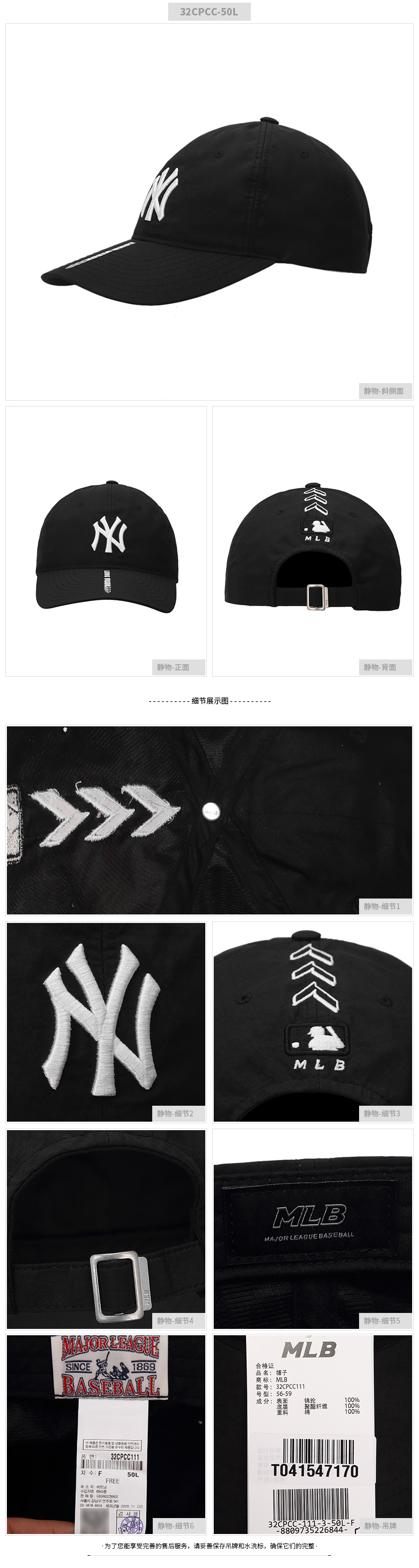 MLB官方旗舰男女帽子情侣帽 21春夏新款休闲帽NY纽约洋基队鸭舌帽潮流串标素颜帽美职棒时尚棒球帽32CPCC-50L